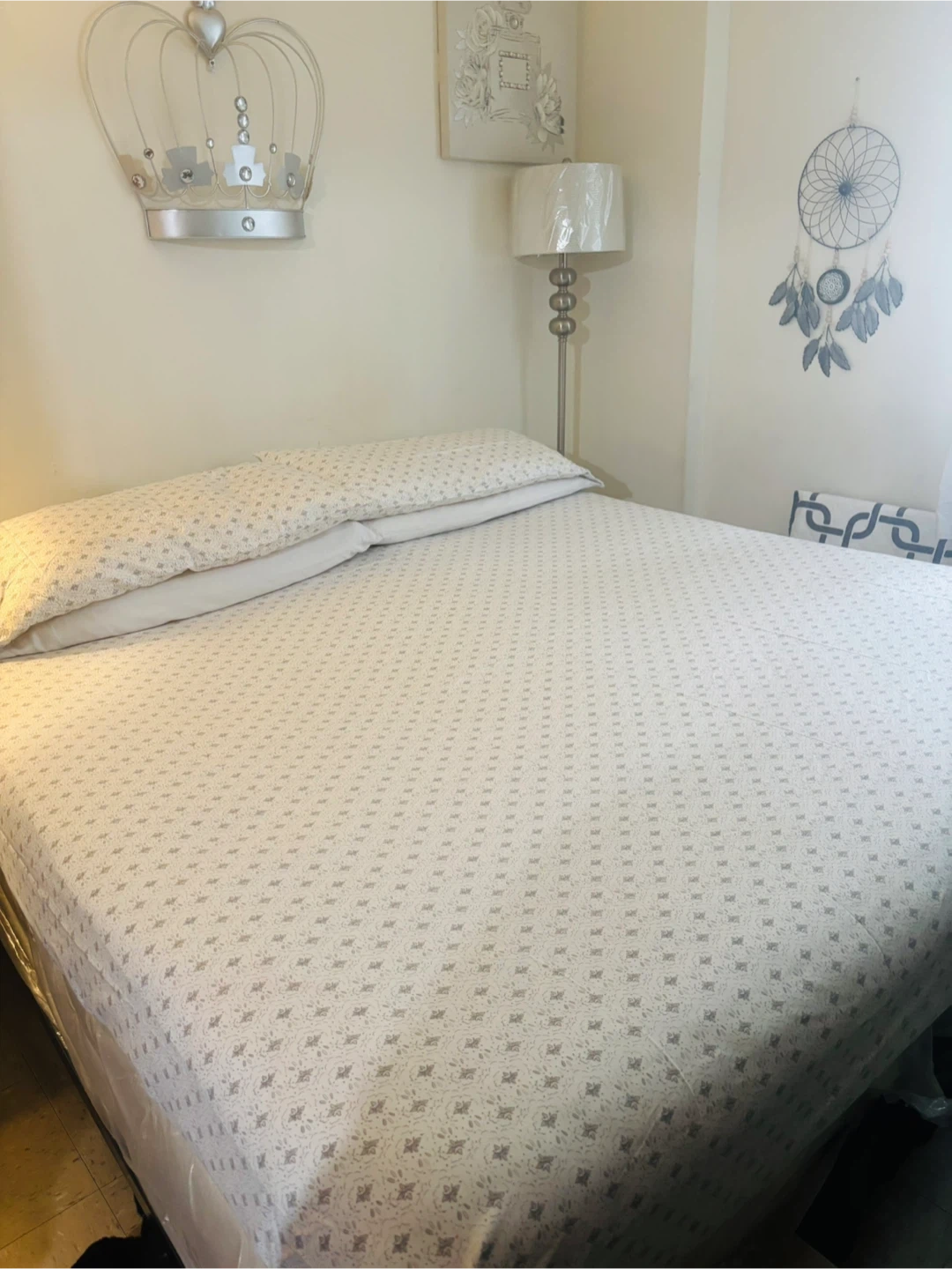 This set comes with king size mattress that includes two bottom twin boxsprings and metal frame. Its mattress made of a soft white and light gray fabric blend with firm material and cooling for comfort. It鈥檚 perfect for adding a touch of subtle elegance to your bedroom.