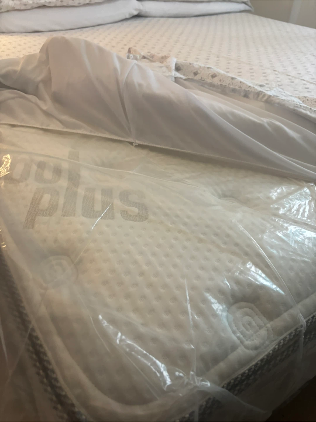 This set comes with king size mattress that includes two bottom twin boxsprings and metal frame. Its mattress made of a soft white and light gray fabric blend with firm material and cooling for comfort. It鈥檚 perfect for adding a touch of subtle elegance to your bedroom.