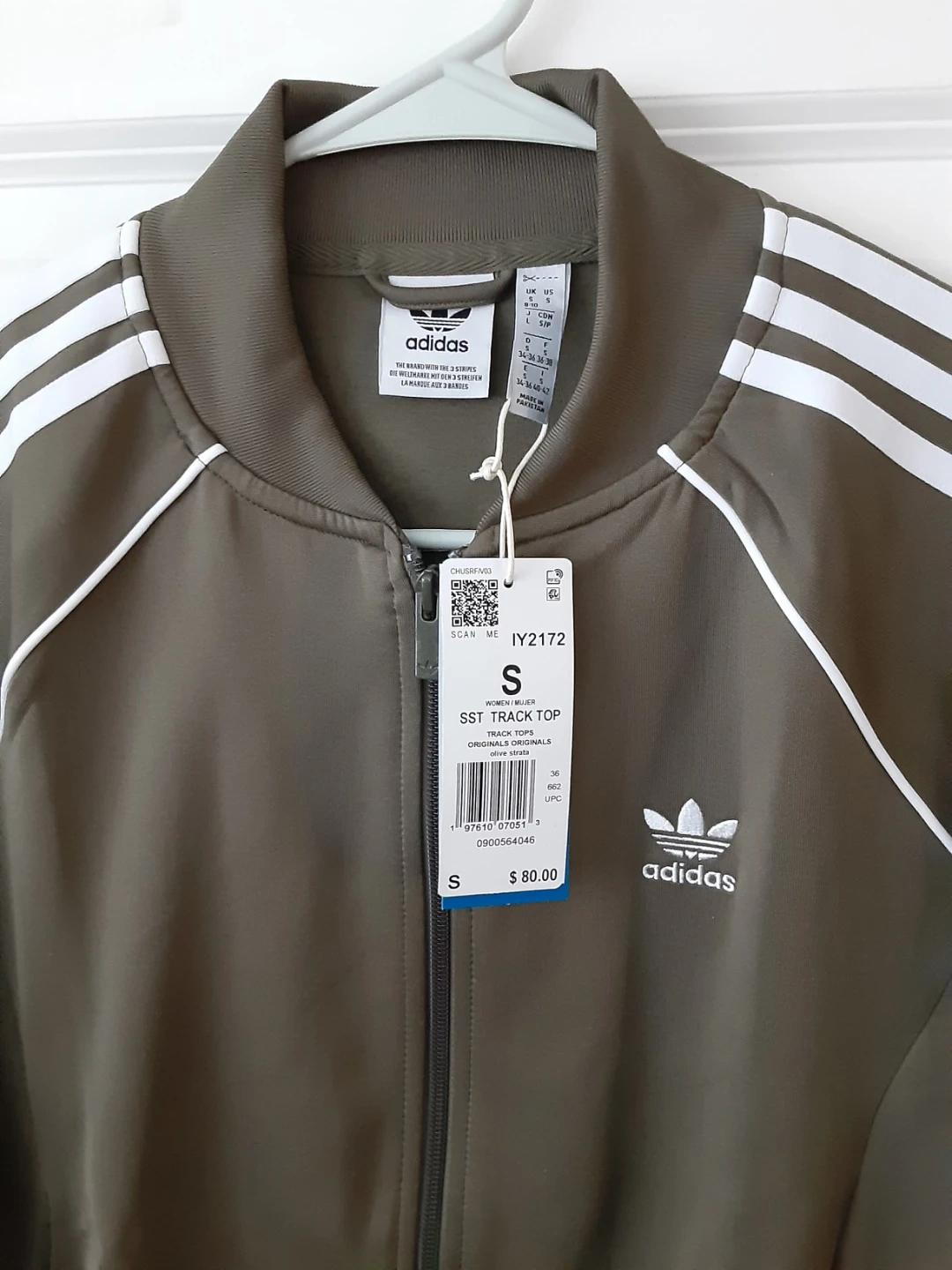 Adidas women's SST track top in size small. It's a classic design with signature 3-stripes on the sleeves. Full zip closure and two hand pockets. Made with a comfortable polyester blend.