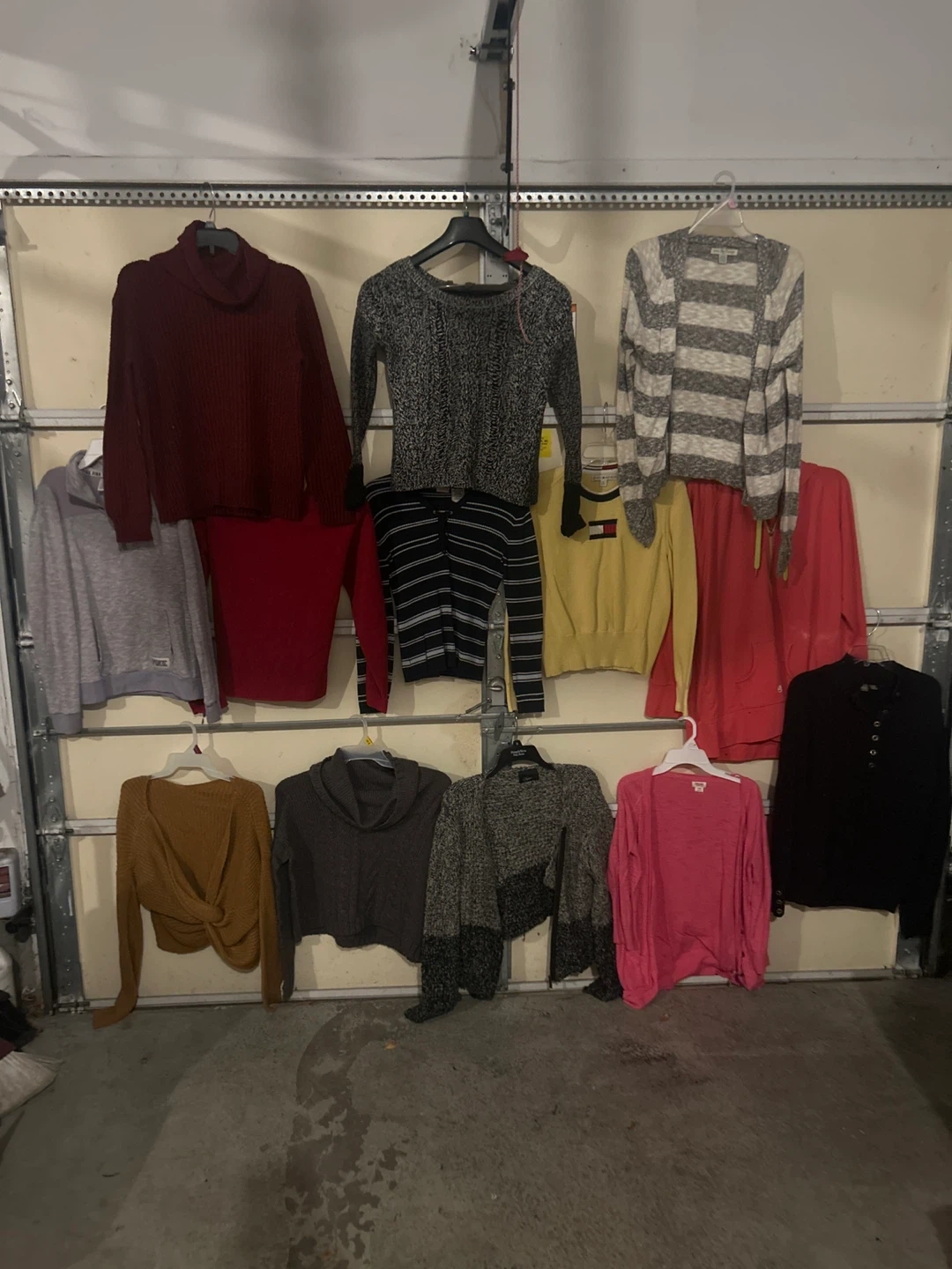 Selling a collection of assorted women's sweaters. There are various colors and styles available. Brands include Tommy Hilfiger and PINK. Perfect for layering or adding to your wardrobe!