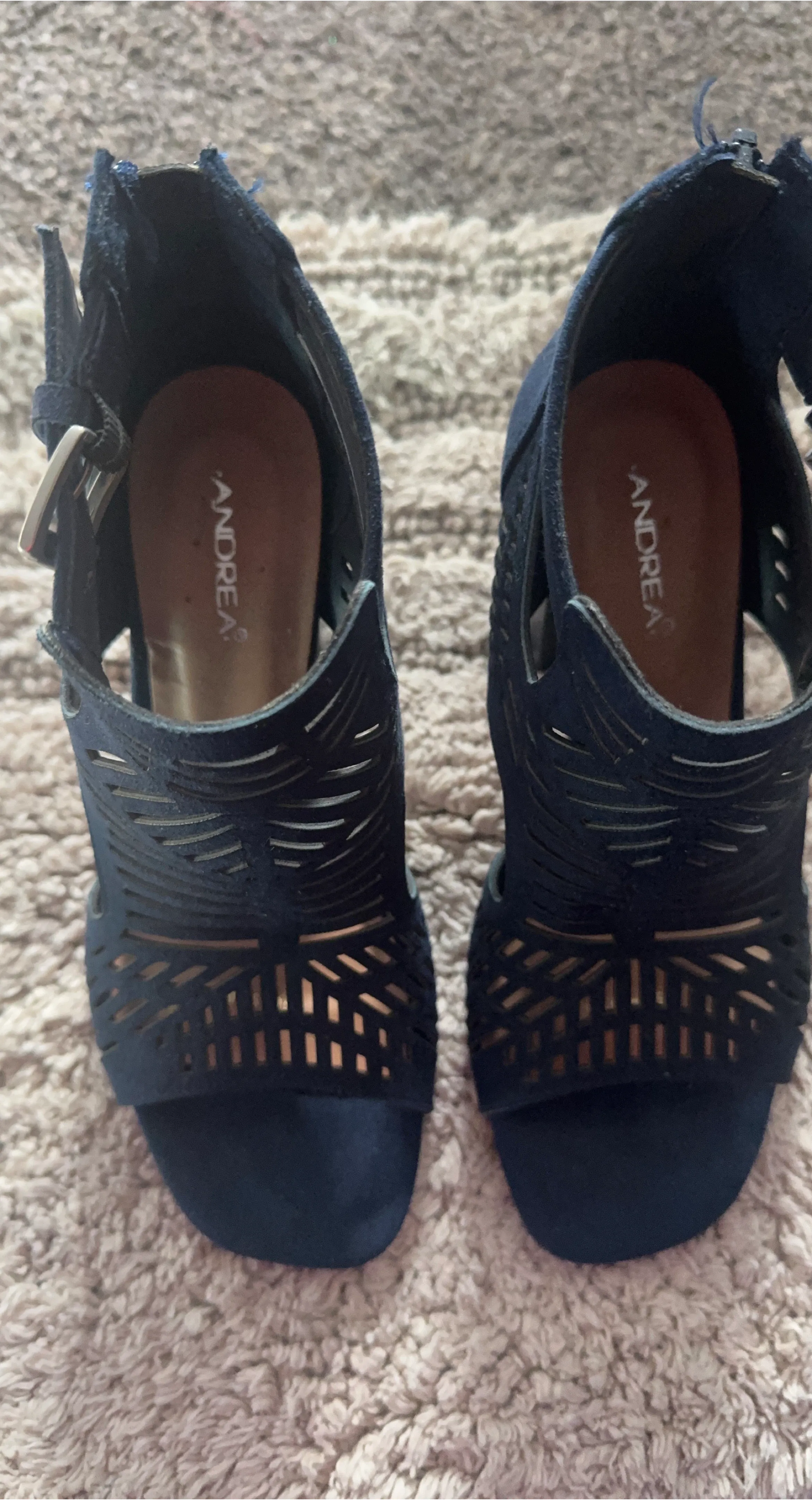 These are a stylish pair of Andrea heels in a beautiful blue color. They are size 8.5 and in good condition. Perfect for dressing up any outfit!