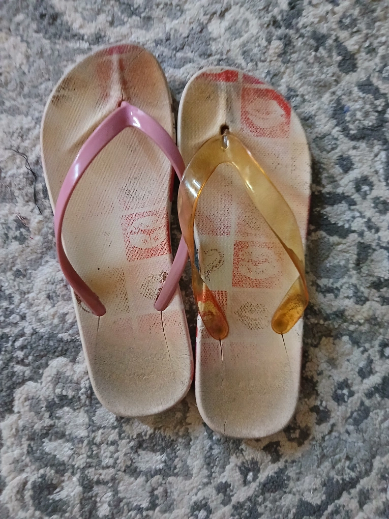 Selling a pair of used flip flops. They show signs of wear, as you can see in the pictures. Still have some life left in them!