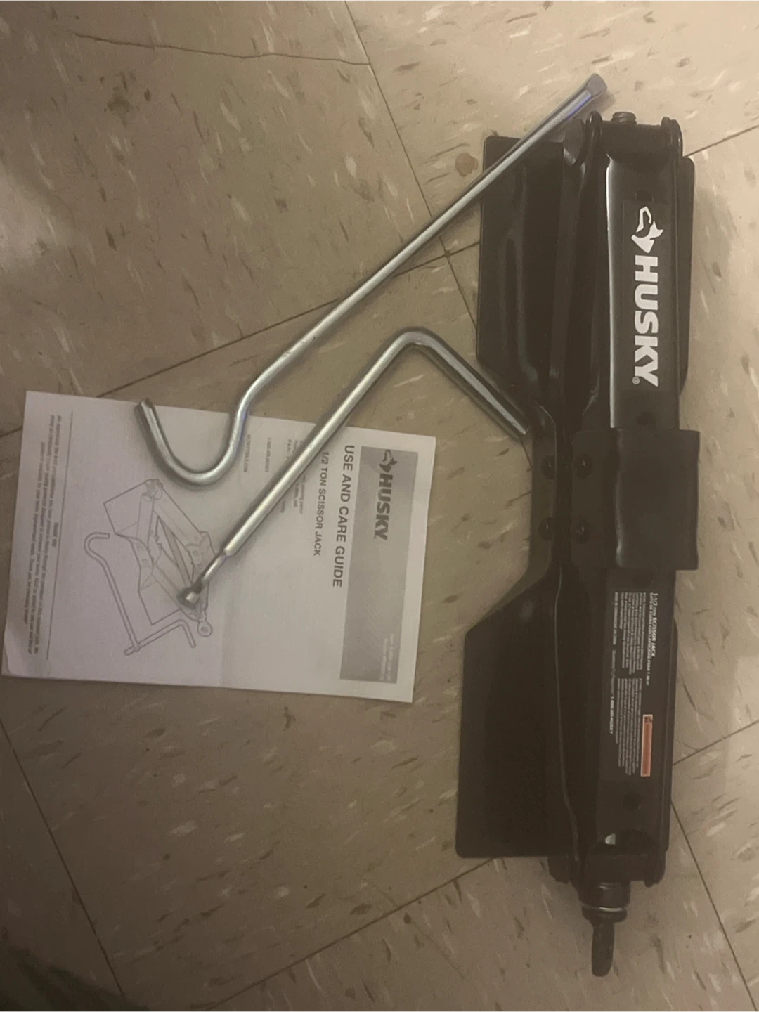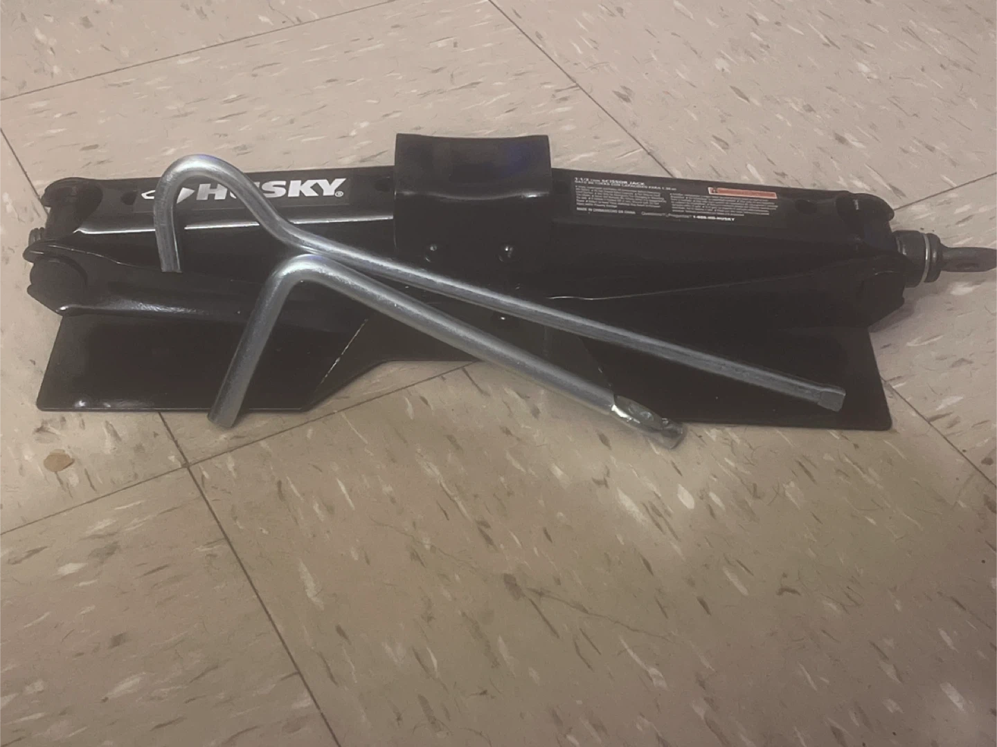 Selling a Husky 1-1/2 Ton Scissor Jack! It comes with the original box and the handle for operation. This jack is perfect for changing tires or performing other maintenance on your vehicle. Grab it today!
