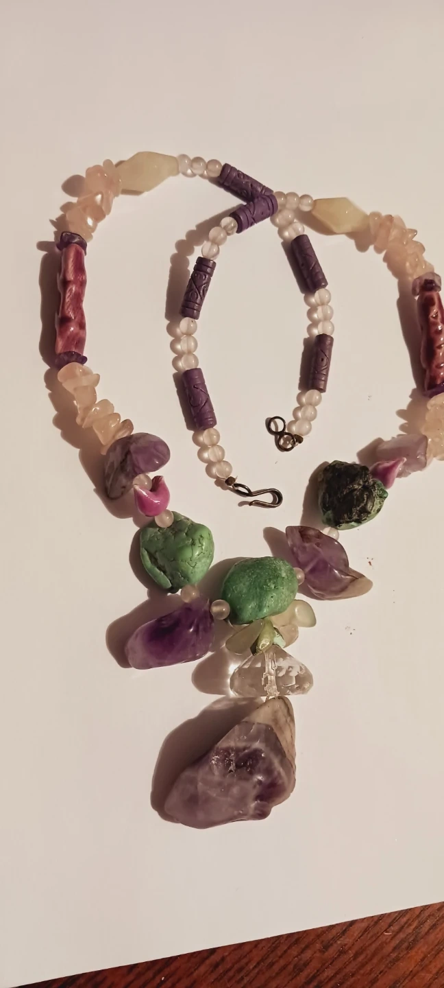 This gorgeous necklace features a variety of colorful gemstones including amethyst, rose quartz, jade, Turquoise..etc.A unique accessory for any jewelry collection!! 20" long. Excellent condition. ALL MY PRICES ARE NEGOTIABLE !!