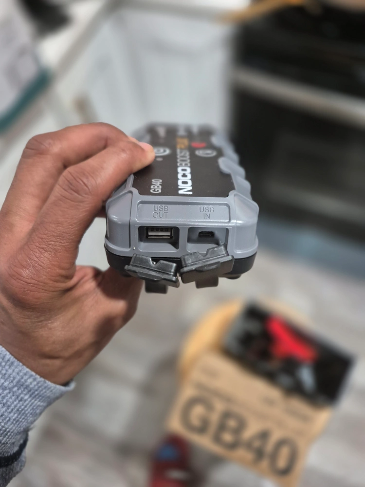 Selling a NOCO Boost Plus GB40 jump starter. It's a portable lithium car battery jump starter pack that delivers 1,000 amps for jump starting a dead battery in seconds. It's suitable for gasoline engines up to 6 liters and diesel engines up to 3 liters. The box is included.