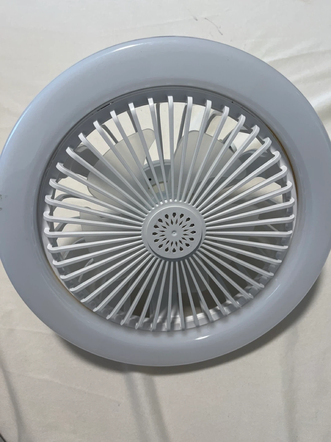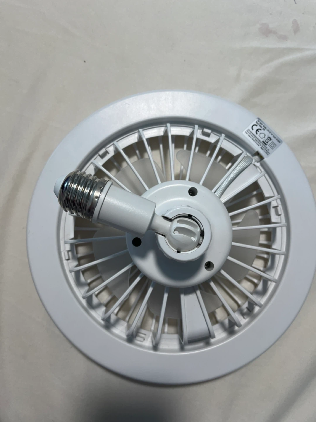 This is a ceiling fan light fixture. It's designed to fit into standard light sockets. The fan provides air circulation while the light socket allows for illumination.