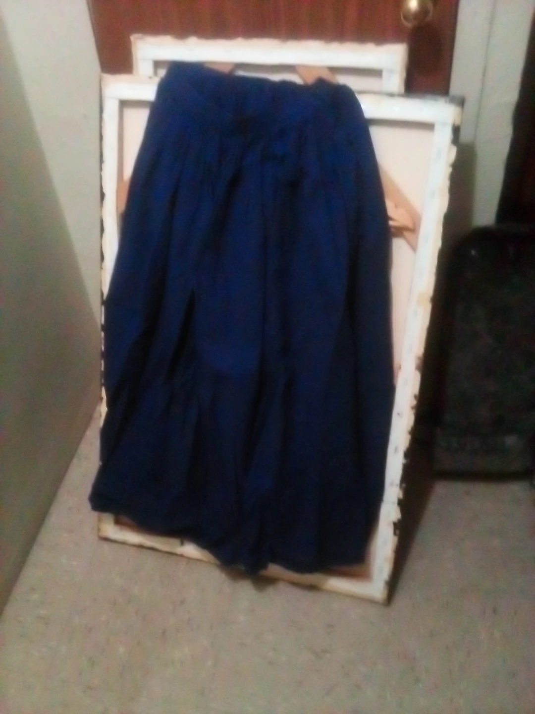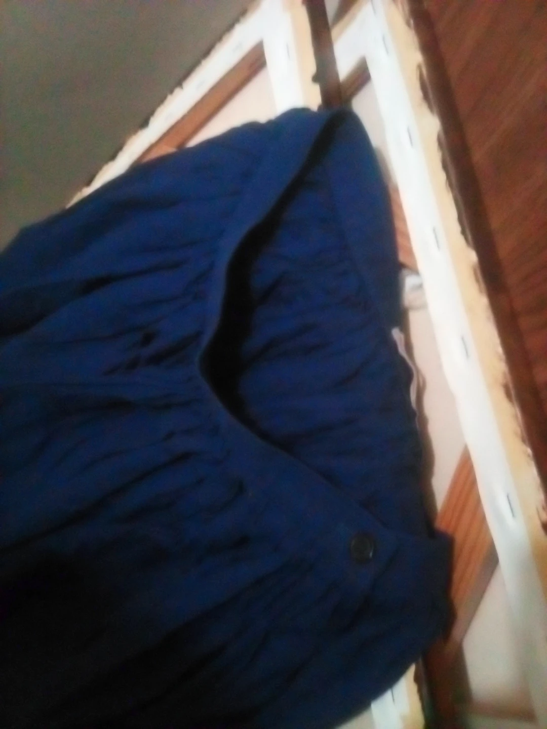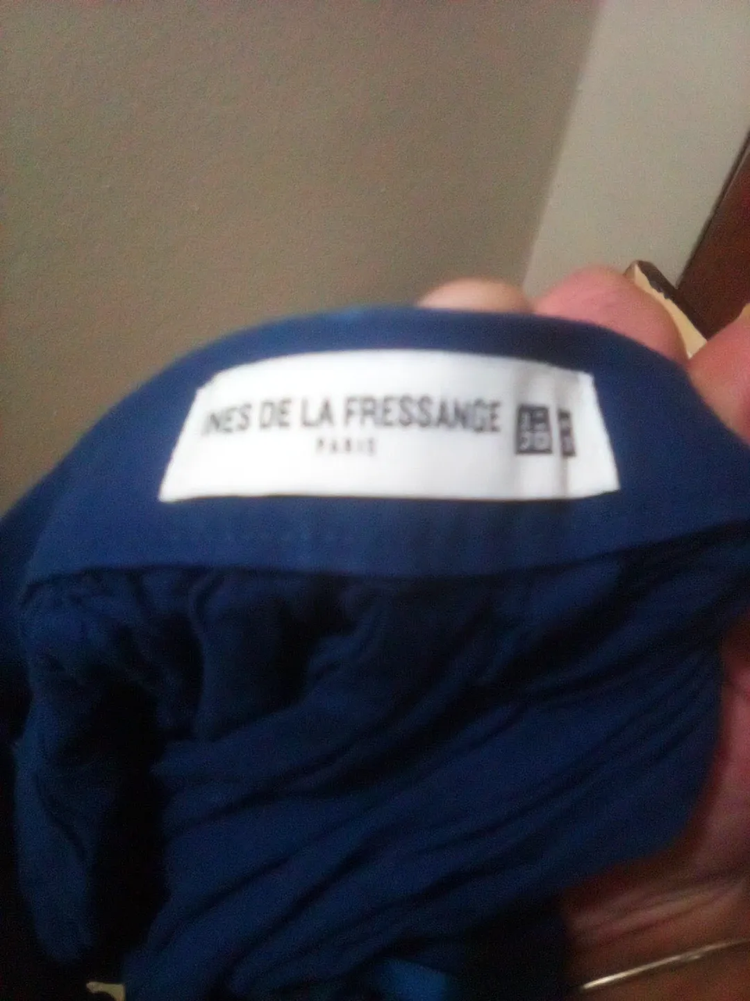 Navy blue midi skirt from Ines de la Fressange Paris. It's made of a flowing fabric with a comfortable elastic waistband and a button closure. This skirt is a versatile piece for your wardrobe!