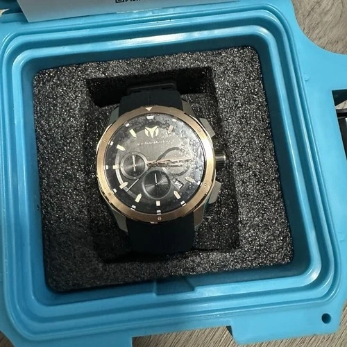 Brand new with the tag, 100% original in the slot case! Comes with free slot case. Case & Dial: Black Dial, Metal Dial Material, 43mm Case Size, Black & Gold Case Tone, Steel Case Material, Push Crown Type, White Luminous Color, New Lite Luminous Material. Movement: Quartz Movement Type, Japan Movement Components, TM Movement Vendor, VD53 Movement Caliber. Band: Silicone Band Material, 200mm Band Length, 24mm Band Size, Black Band Tone. Other: TF1178 Product Family Code, TM-318106 Model, Mineral Crystal Type, Watches Category, Nomad Subcollection, Men's Gender, No Skeleton Dial, Chronograph Yes. You get what you see in the pictures. All sales are final.