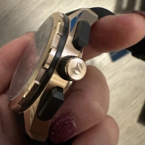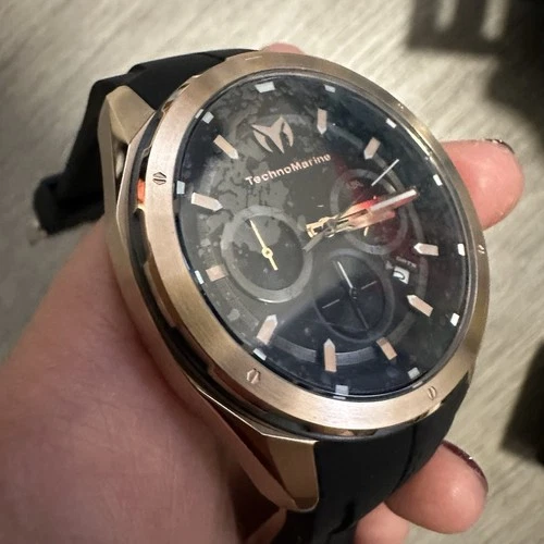 Brand new with the tag, 100% original in the slot case! Comes with free slot case. Case & Dial: Black Dial, Metal Dial Material, 43mm Case Size, Black & Gold Case Tone, Steel Case Material, Push Crown Type, White Luminous Color, New Lite Luminous Material. Movement: Quartz Movement Type, Japan Movement Components, TM Movement Vendor, VD53 Movement Caliber. Band: Silicone Band Material, 200mm Band Length, 24mm Band Size, Black Band Tone. Other: TF1178 Product Family Code, TM-318106 Model, Mineral Crystal Type, Watches Category, Nomad Subcollection, Men's Gender, No Skeleton Dial, Chronograph Yes. You get what you see in the pictures. All sales are final.