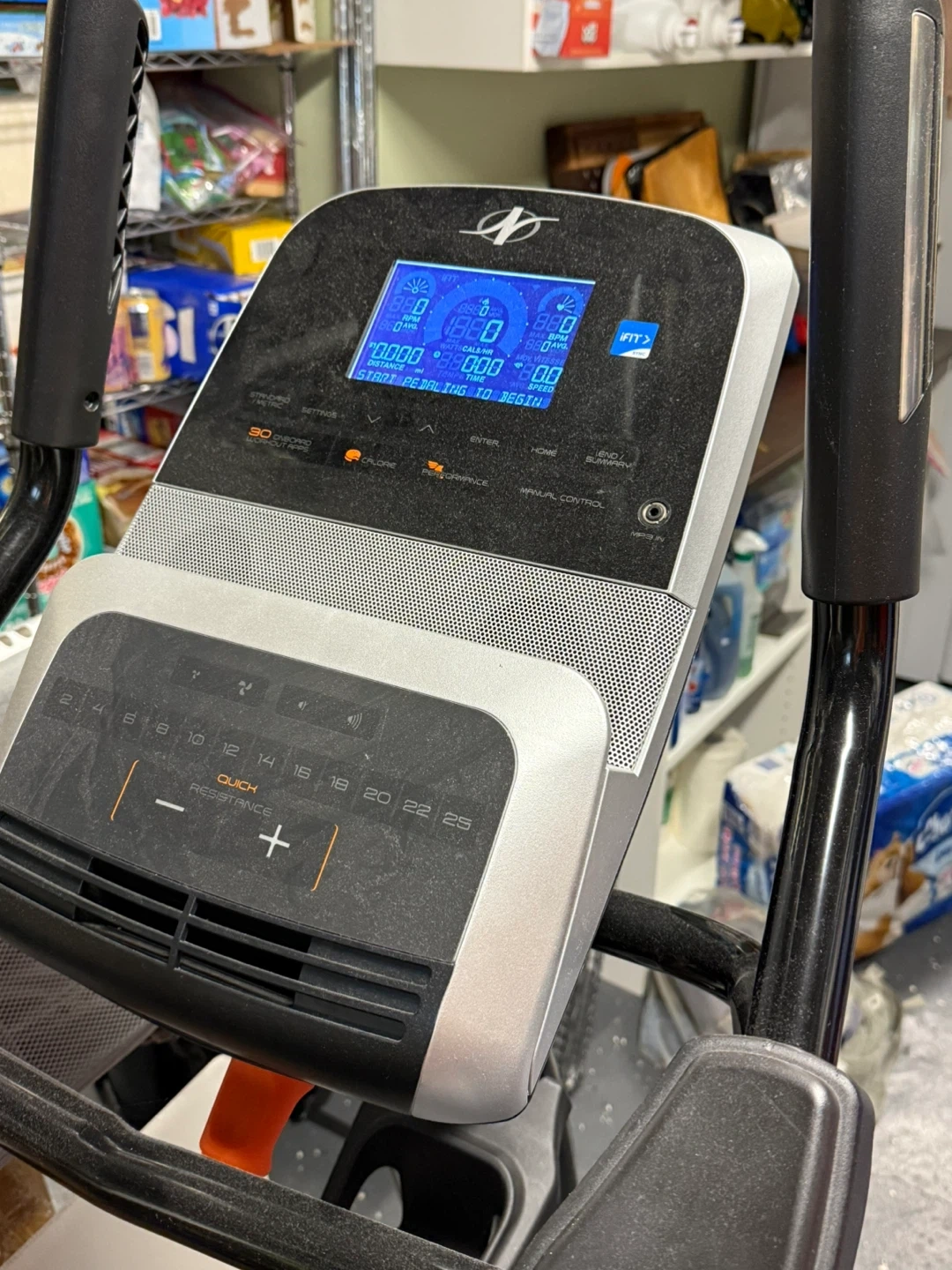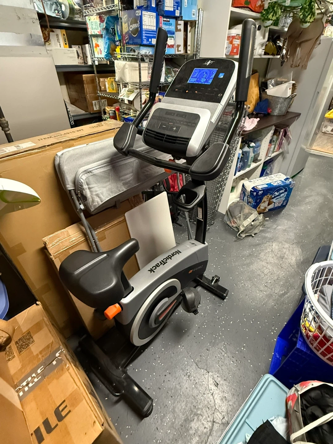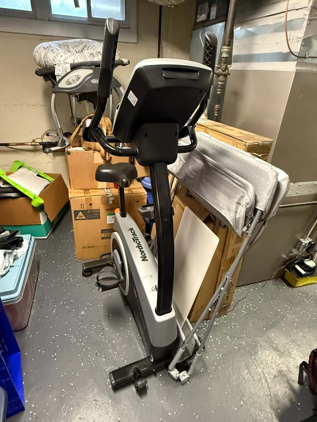 This gently used NordicTrack GX 4.4 Pro Upright Exercise Bike is in excellent condition and ready for a new owner. This high-quality exercise bike offers a comfortable and effective cardio workout, perfect for all fitness levels. It features: - Model: NordicTrack GX 4.4 Pro (NTEX75016.2) - iFit Compatible - Vibrant LCD Display: Easily track your distance, time, speed, RPM, watts, and calories burned. - Adjustable Resistance: With 25 digital resistance levels, you can easily switch up the intensity of your ride to challenge yourself. - 30 Onboard Workout Apps: Variety of built-in programs to help you reach your fitness goals. - Comfortable Seating: Ergonomic, adjustable seat for a comfortable ride during longer sessions. - Compact Design: Ideal for home gyms. Dimensions: Approximately 42 inches (length) x 22.5 inches (width). This bike provides a smooth and quiet ride, making it perfect for any home environment.