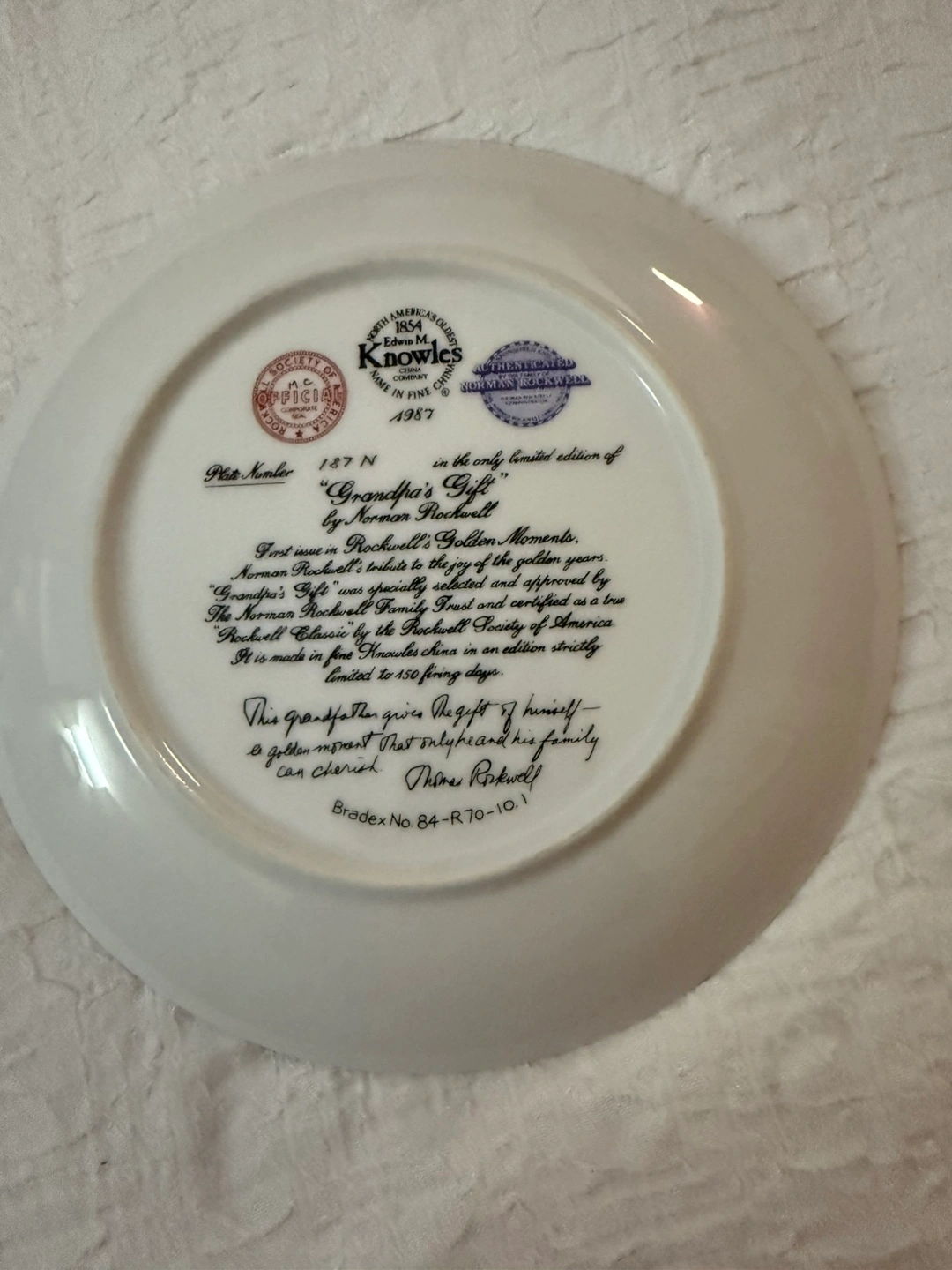 Selling a vintage Norman Rockwell collector's plate titled "Grandpa's Gift." This plate is from the Rockwell's Golden Moments series and is in the only limited edition of Norman Rockwell by Knowles. It's a beautiful piece for any collector!