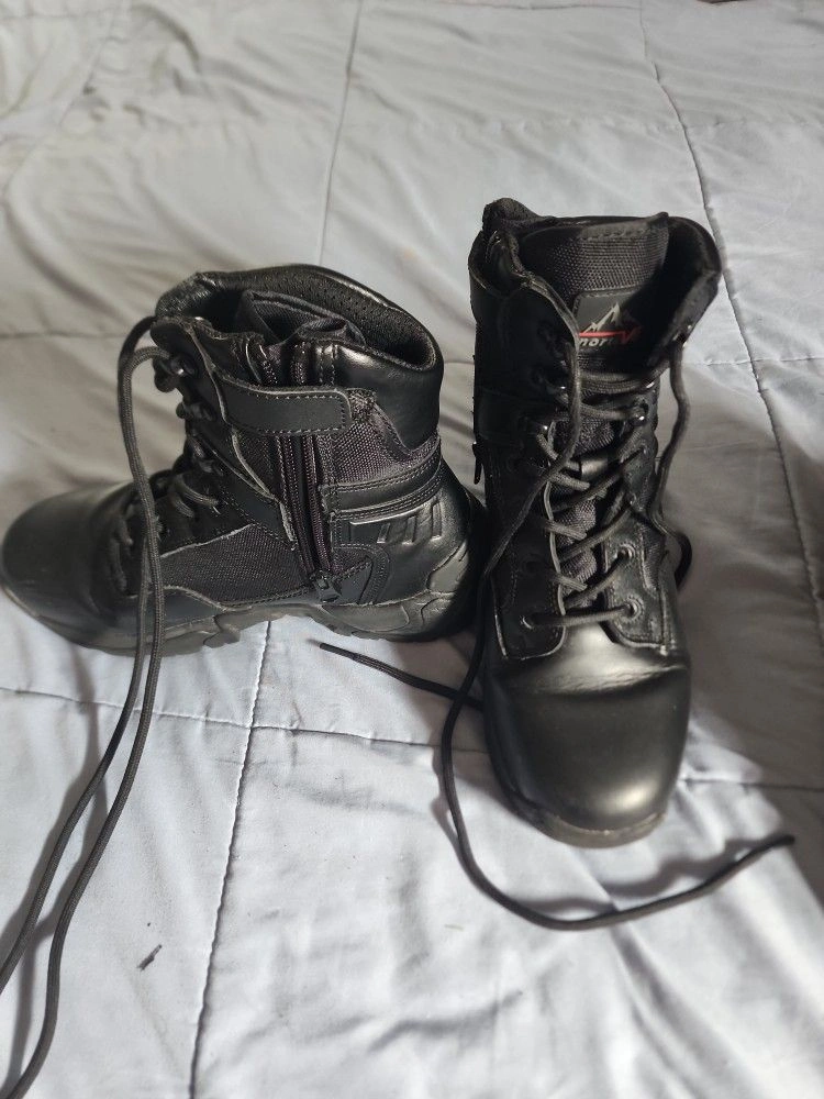 Lightly used work boots. 8 inch side zipper for easy on and off. Arch support. All black. Let me know if you're interested!