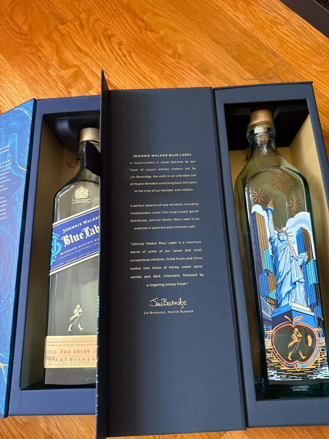 Selling a bottle of Johnnie Walker Blue Label. It's a blended Scotch whisky from John Walker & Sons. This is the New York Limited Edition design. It comes in the original box. Not alcohol only empty bottle. Blue $10 Blue Limited edtion $15