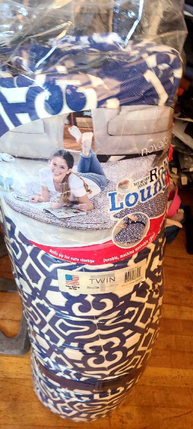 60Selling a Novaform Memory Foam Rollout Lounger in Twin size! It's still in its original packaging and ready to provide comfortable lounging. This lounger features a durable, machine-washable cover and rolls up for easy storage. The dimensions are 39 in x 75 in.