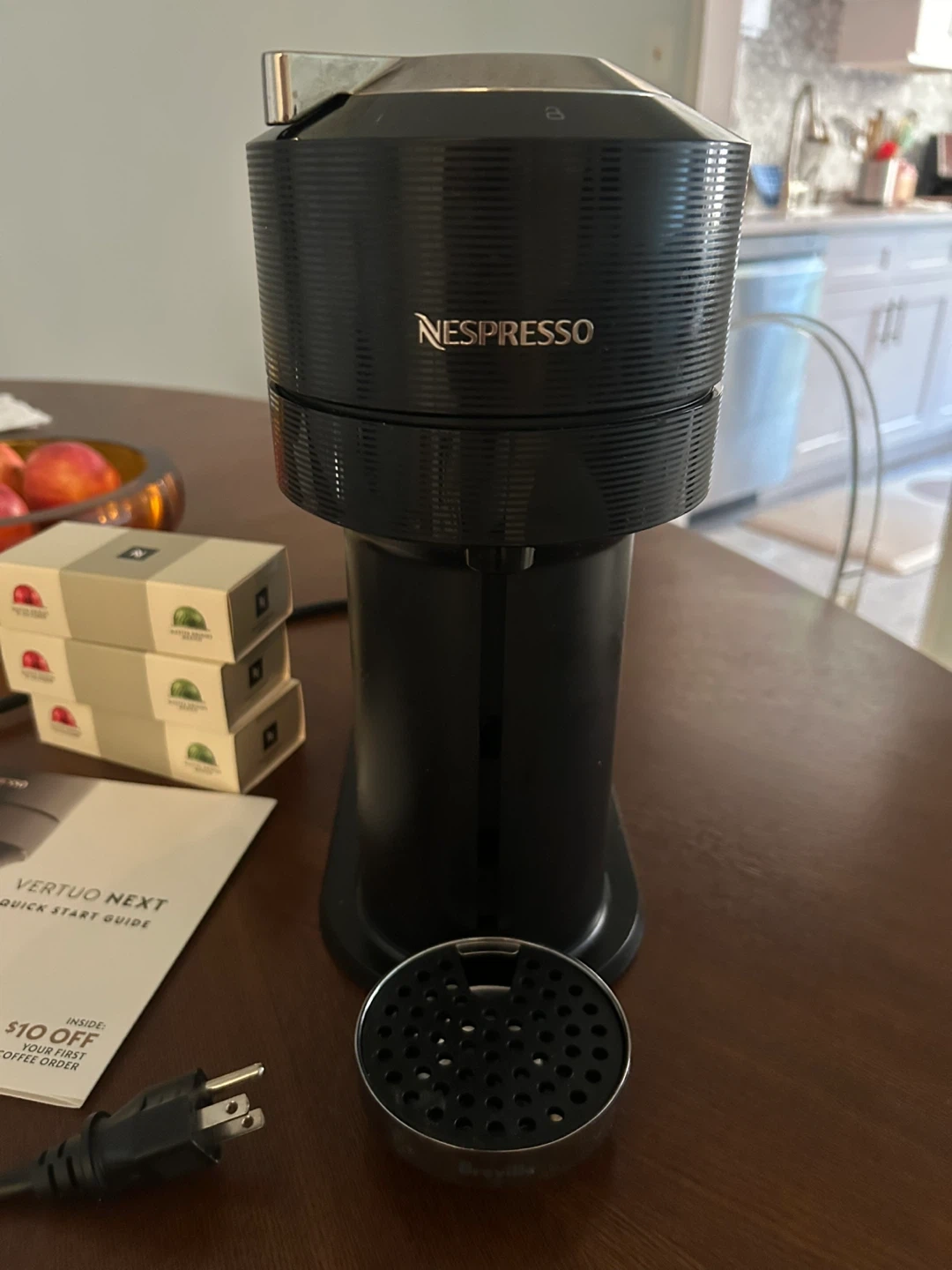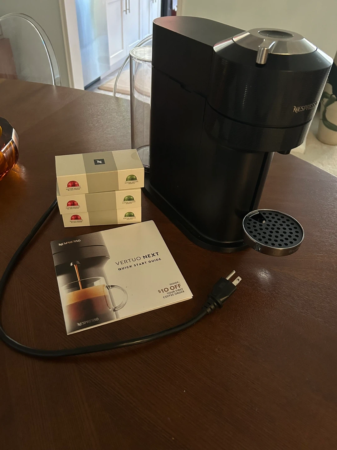 Selling a Nespresso Vertuo Next coffee machine! It's in great condition and ready to make some delicious coffee. Originally retails for $189.95. Received as house warming gift but I just don’t use it. Comes with sample boxes plus throwing in 2 new glass mugs etched with roses
