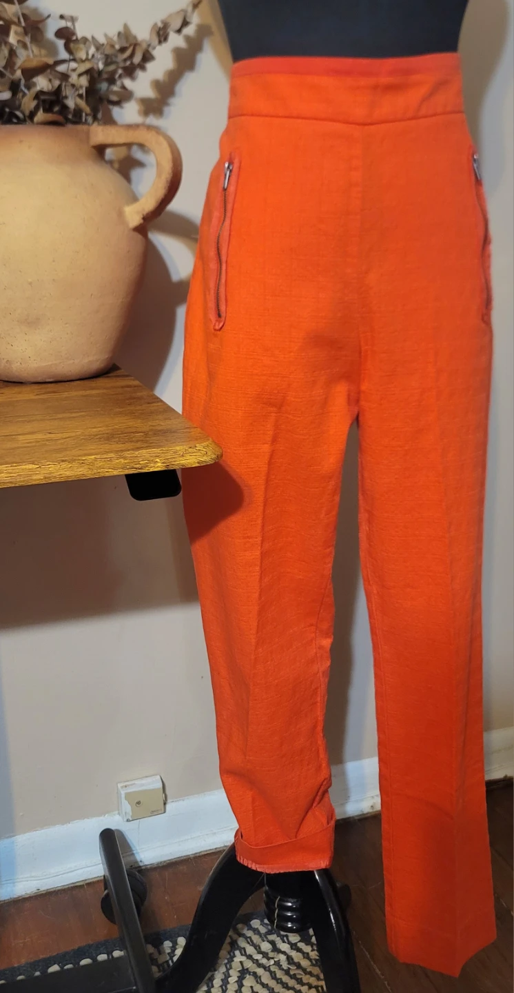 Stylish straight leg pants by #Cartonnier. Vibrant orange color. picture brightens the color of the orange a bit. measurements in pictures. Features zippered pockets. #new #nwt #anthro #charlie #ankle #straight #zipperedpockets #orange #rust #tailored #slim #highrise #trouser #classic #preppy #boho #bohemian #tom-boy #eclecticgrandpa #midcenturymodern #preppymodern #softgirl #scandiminimal #casual #businesscasual #office #work #professional #collegiate #college #professor #teacher #festival #festive #y2k #darkacademia #oldmoney #mobwife #maximalism #softgirl #fairy #spring #easter #resort #travel