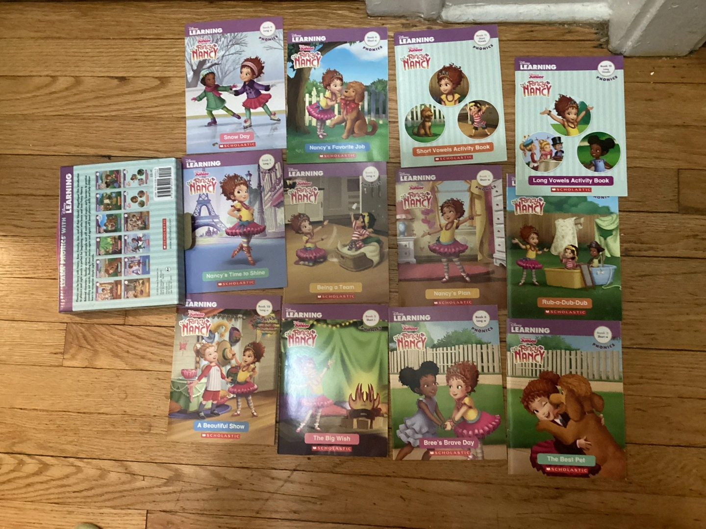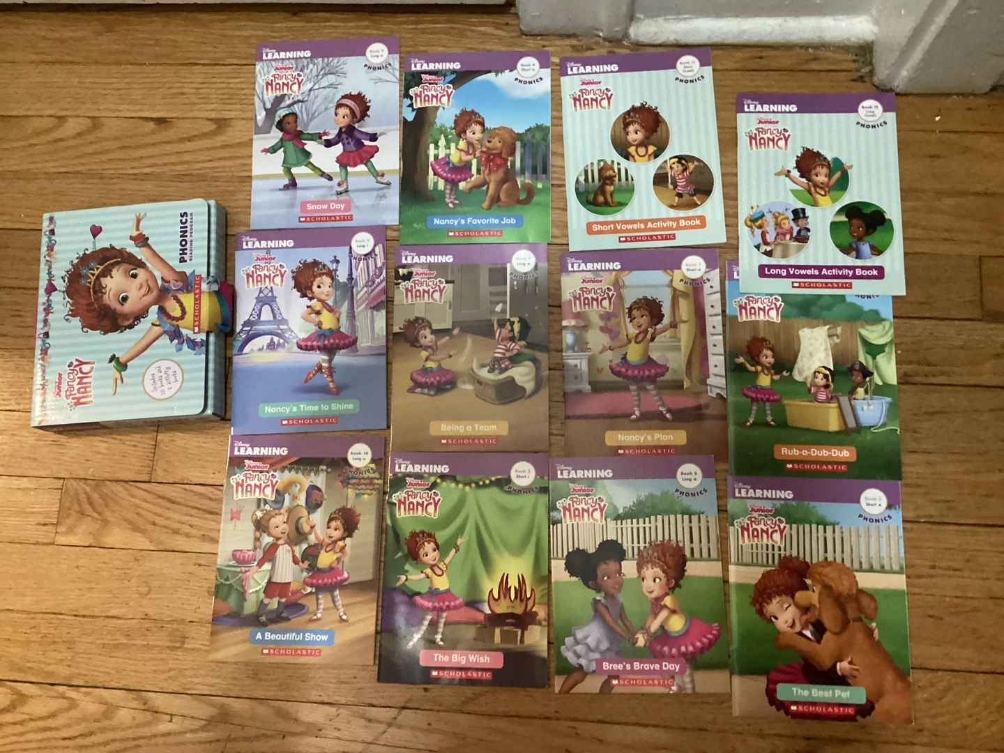 I'm selling a set of Fancy Nancy phonics books! This set includes 12 books from the Learning with Phonics series. Activity books are unused. Perfect for young readers!