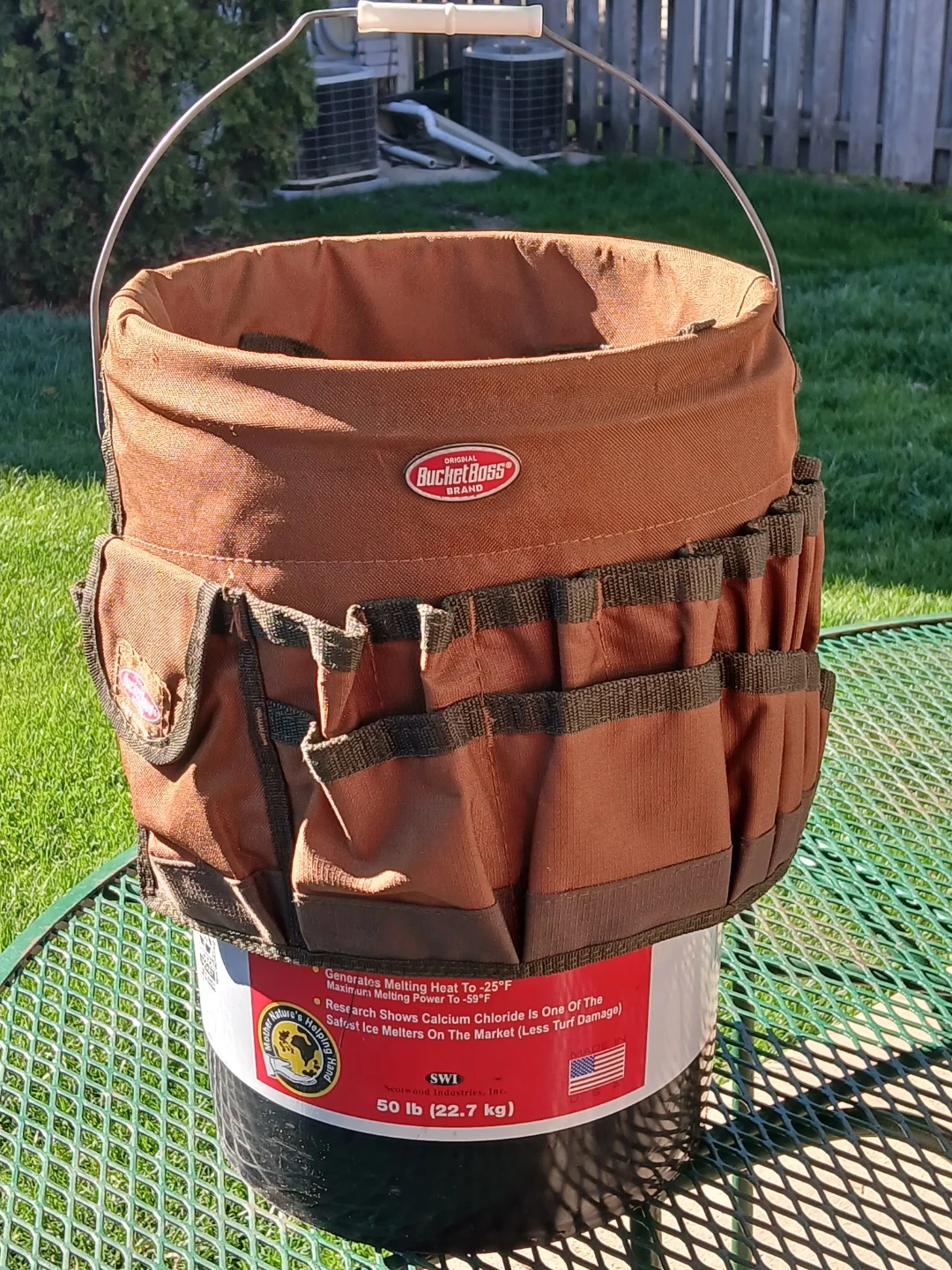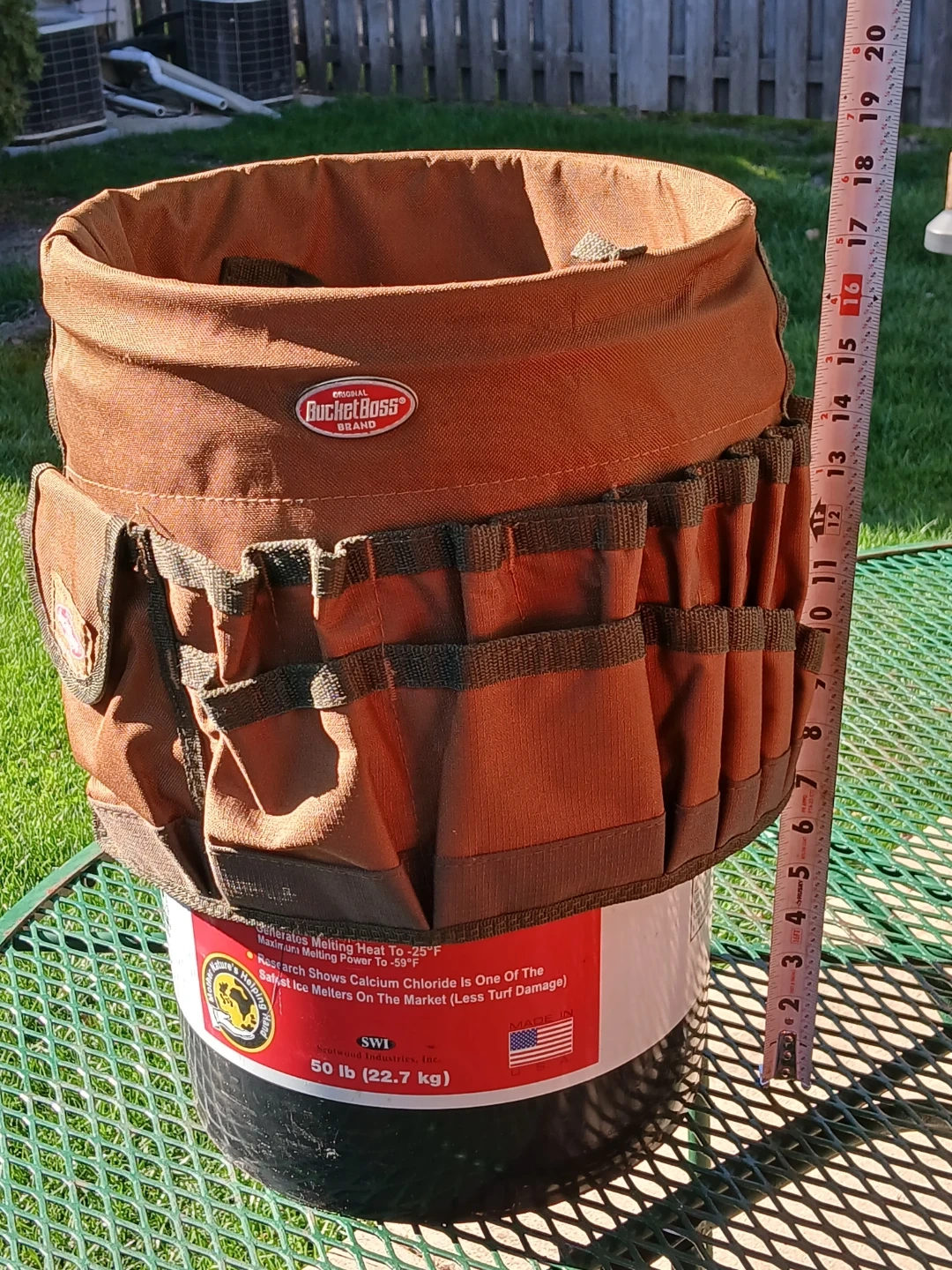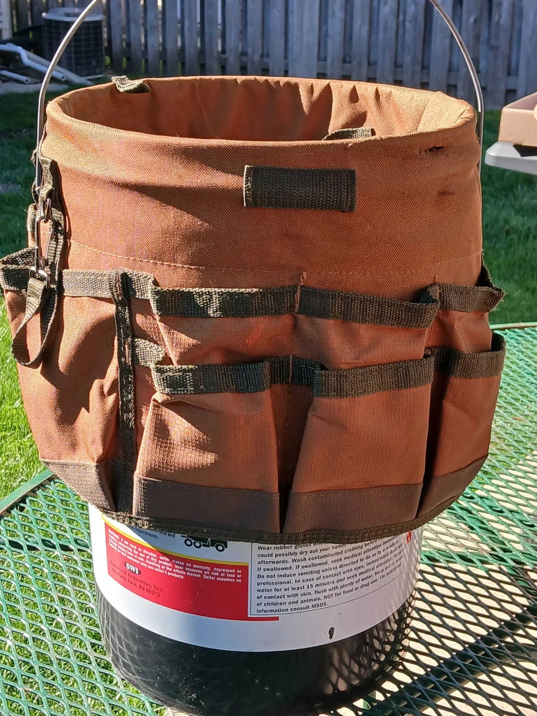This is an Original Bucket Boss tool organizer bucket. It's made of durable brown canvas material. Plenty of pockets for all your tools! 18inches tall. USED LIKE NEW. CASH only, no zelle, no Paypal.