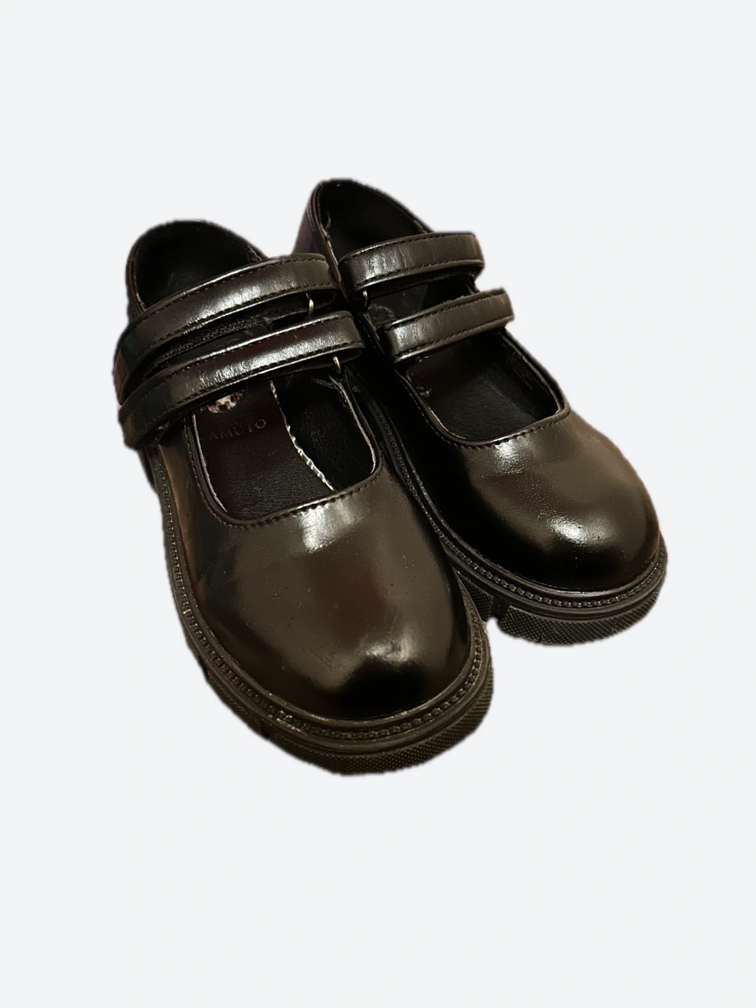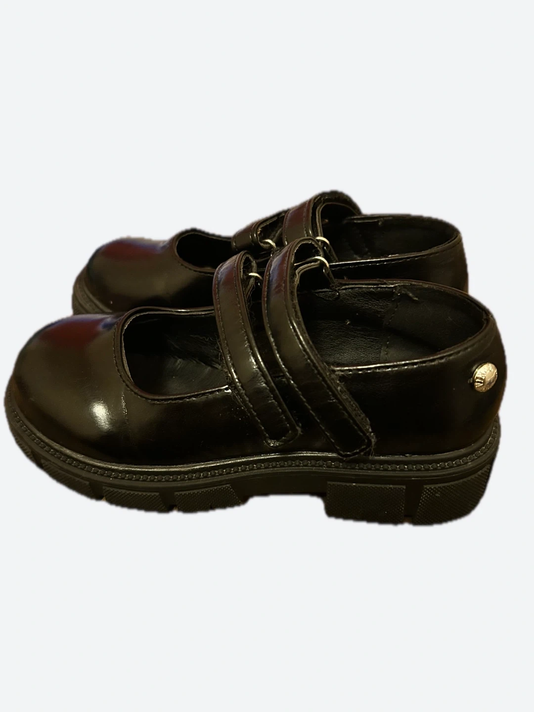 Kids Black patent leather Mary Jane shoes by Vince Camuto. These feature double hook-and-loop straps for easy on and off. The sole is very durable. Size is 12 in Kids
