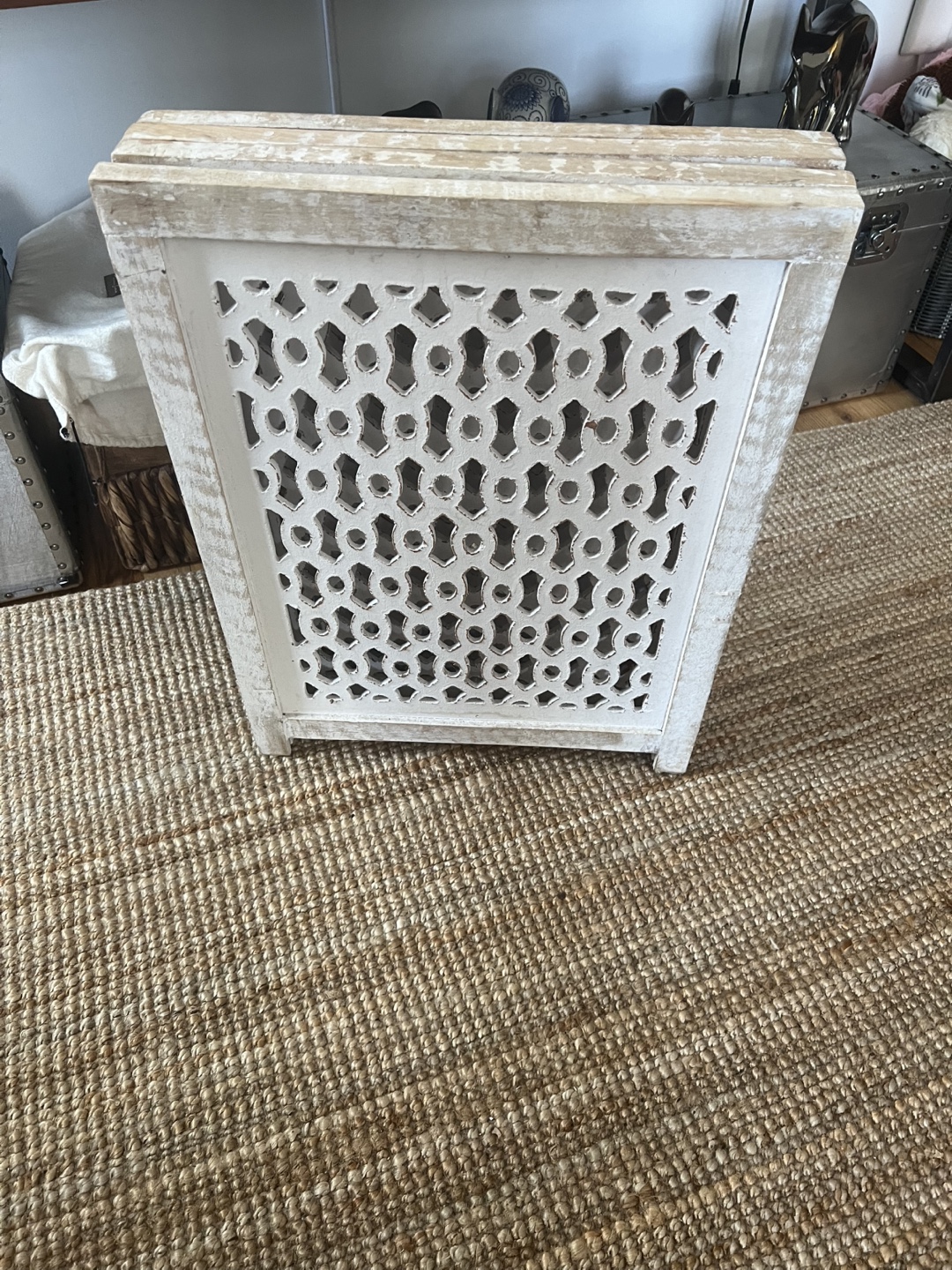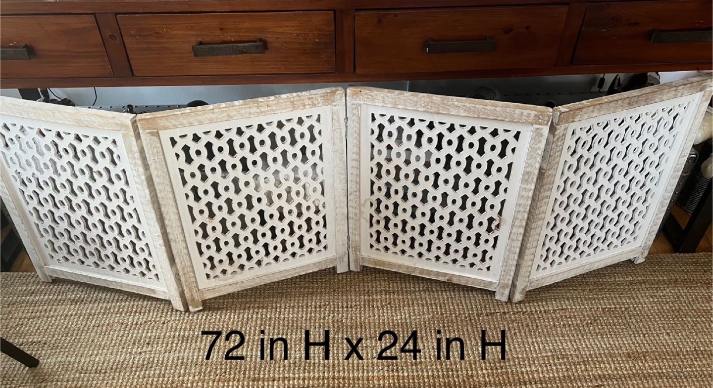Gifting a decorative wooden pet gate. It's in great condition and ready to add a touch of elegance to your space! The dimensions are 72 in H x 24 in W.
