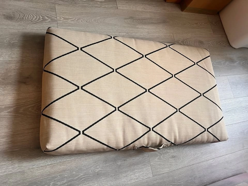 We don't have a dog, we just got 2 of those large bed to use in forts we made in the living room (for ourselves. As in 2 adults lol. We did not have kids at the time lol.) We put those down, put a blanket on it and it was awesome and comfy lol. So because no pets were ever on it, it's like new.