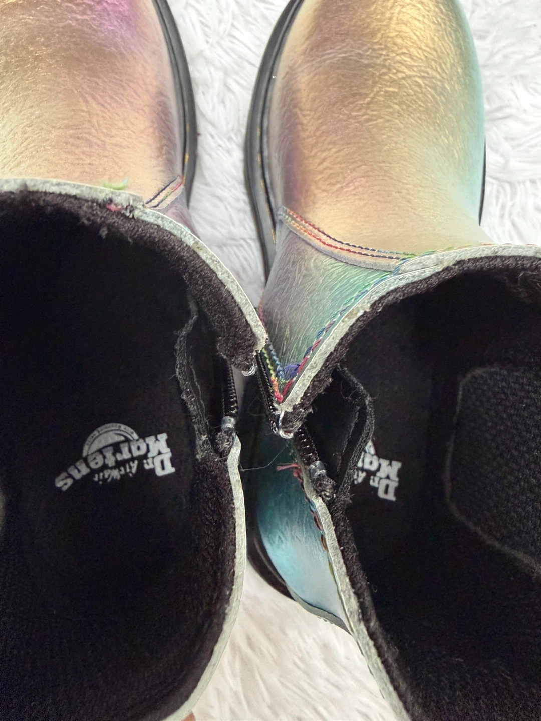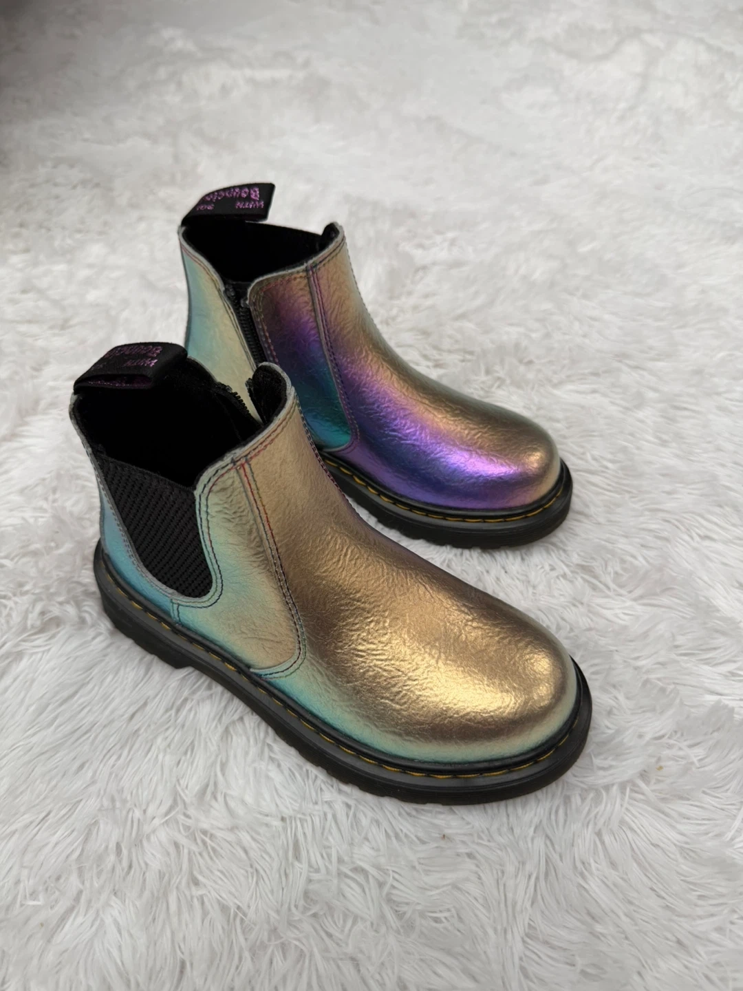 Kids' Dr. Martens Chelsea boots in a cool iridescent finish.