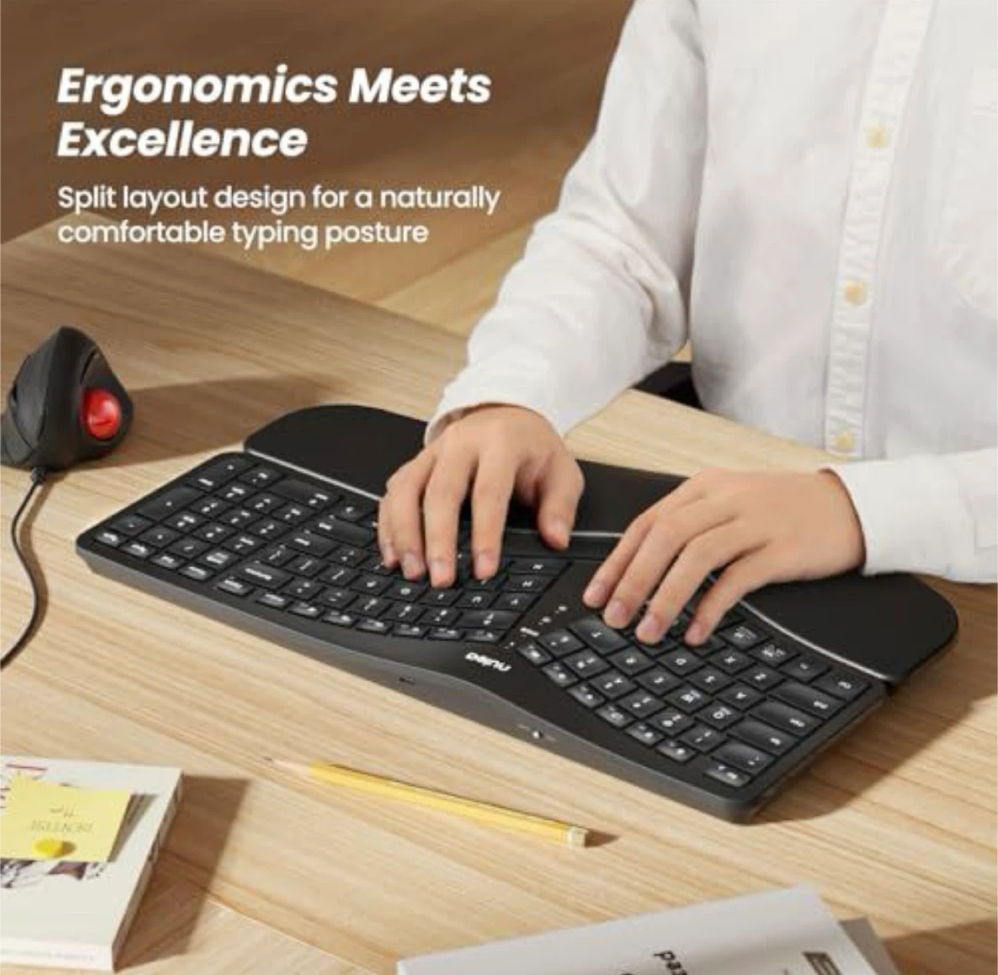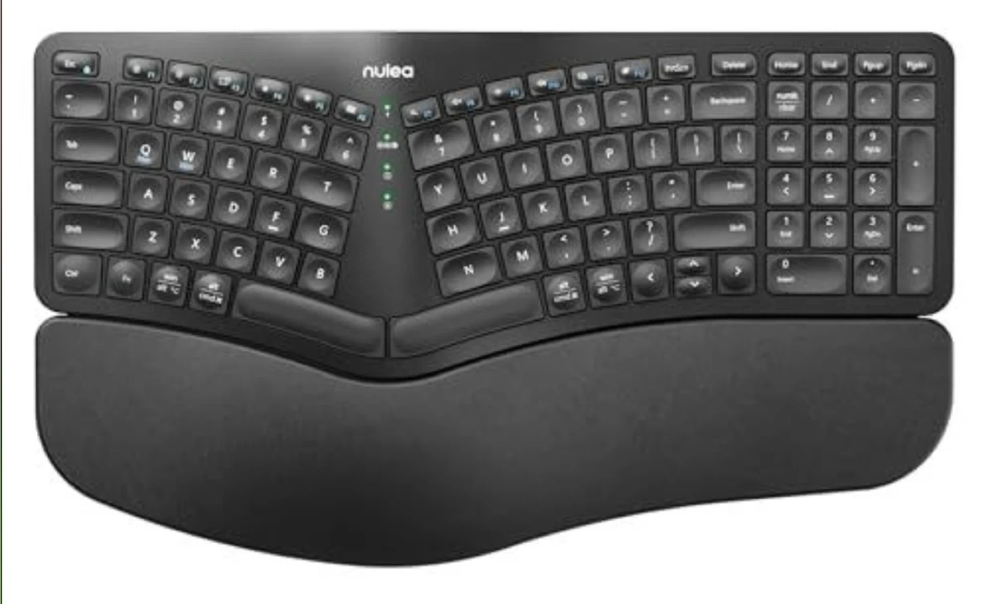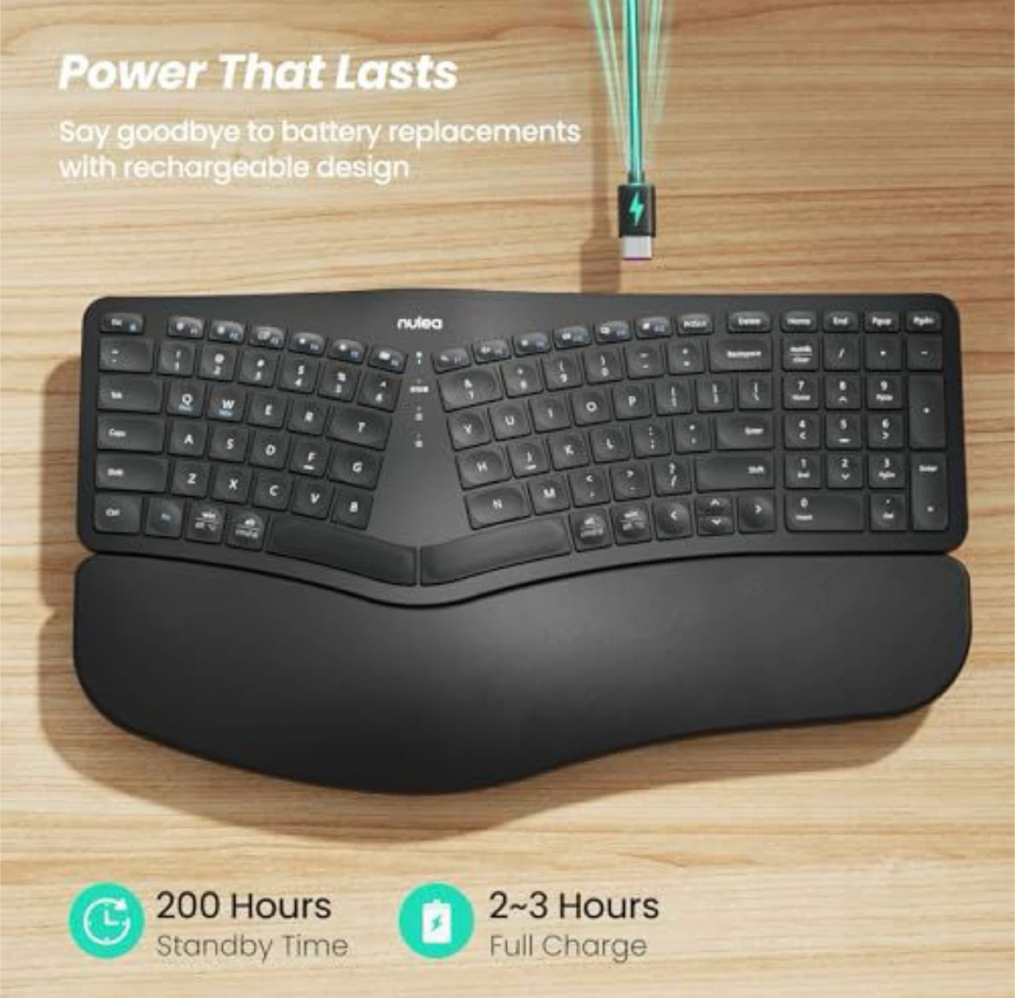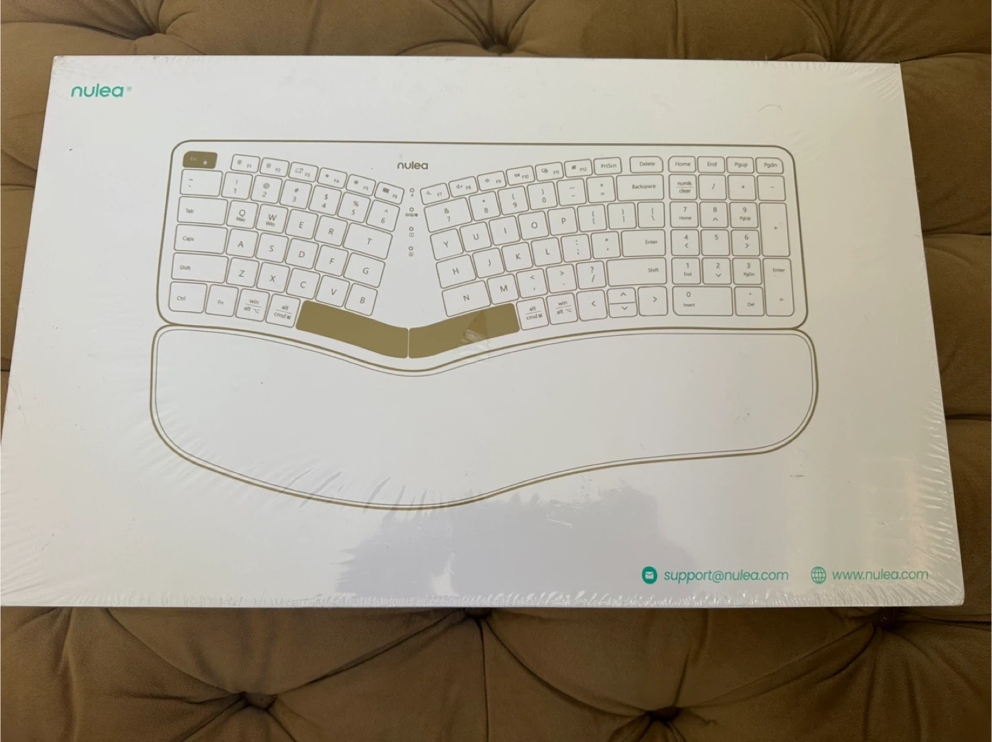 39Selling a brand new Nulea RT05B ergonomic black keyboard! It features a split layout design for a naturally comfortable typing posture. The keyboard has a rechargeable lithium battery and provides 200 hours of standby time with a 2-3 hour full charge. Product dimensions are 18.5 x 8.66 x 1.5 in. Comes with the original box!