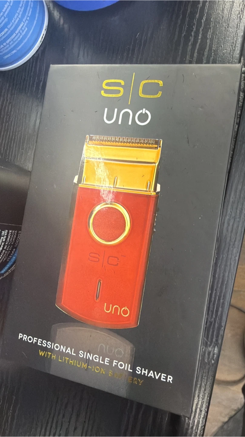 This is the SC Uno professional single foil shaver. It's powered by a lithium-ion battery for cordless use. It includes a professional single foil design.
