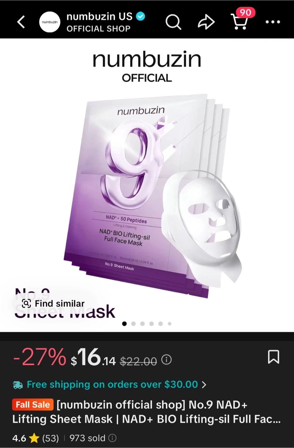 I have a set of Numbuzin No.9 NAD+ BIO Lifting-sil Full Face Masks for sale! This sheet mask is designed to lift and glow, reducing crow's feet, forehead wrinkles, smile lines, and neck wrinkles. It also helps to create a defined jawline and enhances elasticity for the entire face