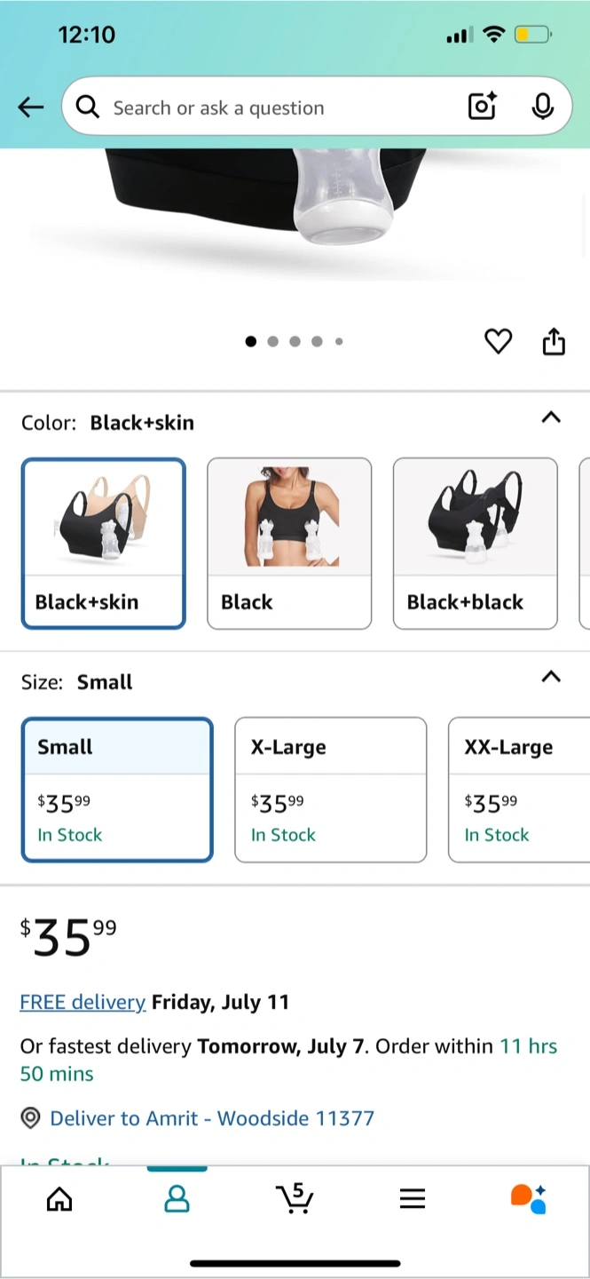 Selling a nursing bra in size small. It comes in a combination of black and skin tone. Great for new moms. Only used twice. Couldnt succes in breastfeeding.