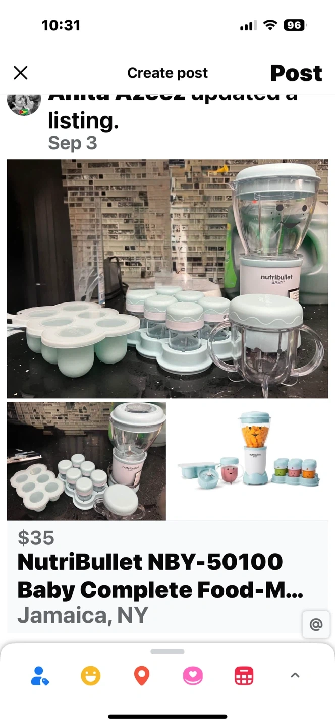 I'm selling a NutriBullet NBY-50100 Baby Complete Food-Making System. It looks like it's in great shape and ready to help you make healthy meals for your little one! It includes the blender, cups, and freezer trays. My daughter used it maybe once or twice a doe her son