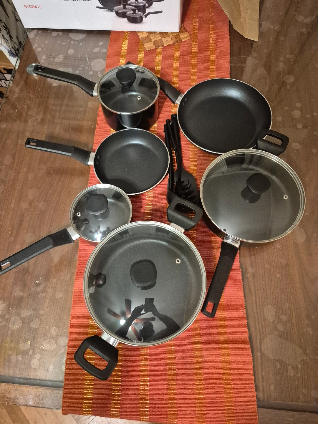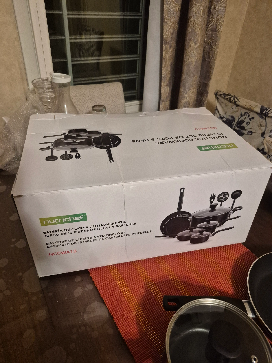Selling a brand new NutriChef 12-piece nonstick cookware set, still in its original box! This set includes a variety of pots and pans, perfect for any kitchen. The set is nonstick, making cooking and cleanup a breeze. Get ready to upgrade your cooking experience!