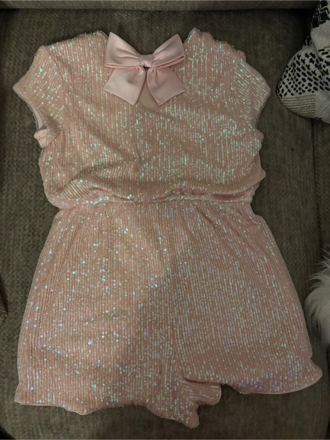 This adorable pink romper is covered in shimmering sequins and features a cute bow on the back. It's perfect for any special occasion or dress-up fun! Teen Size 16