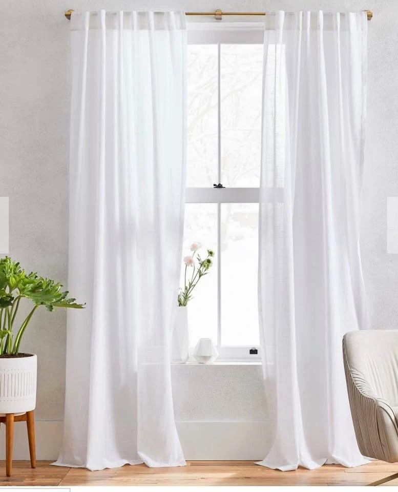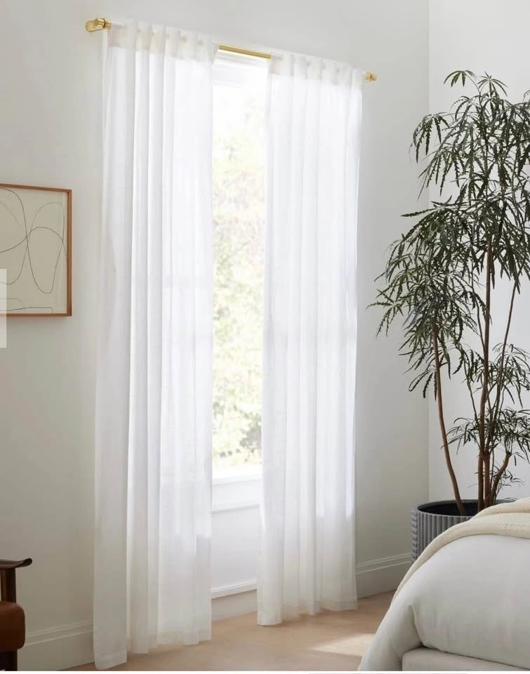 One set of two curtains, 48” x 84”, never used because they were not right for the window we have; modern yet dreamy fabric; lets in lots of light while still providing privacy; the set sells new from West Elm for $79.00; pick up on upper west side (also have a never used curtain rod for sale- please request info if interested)