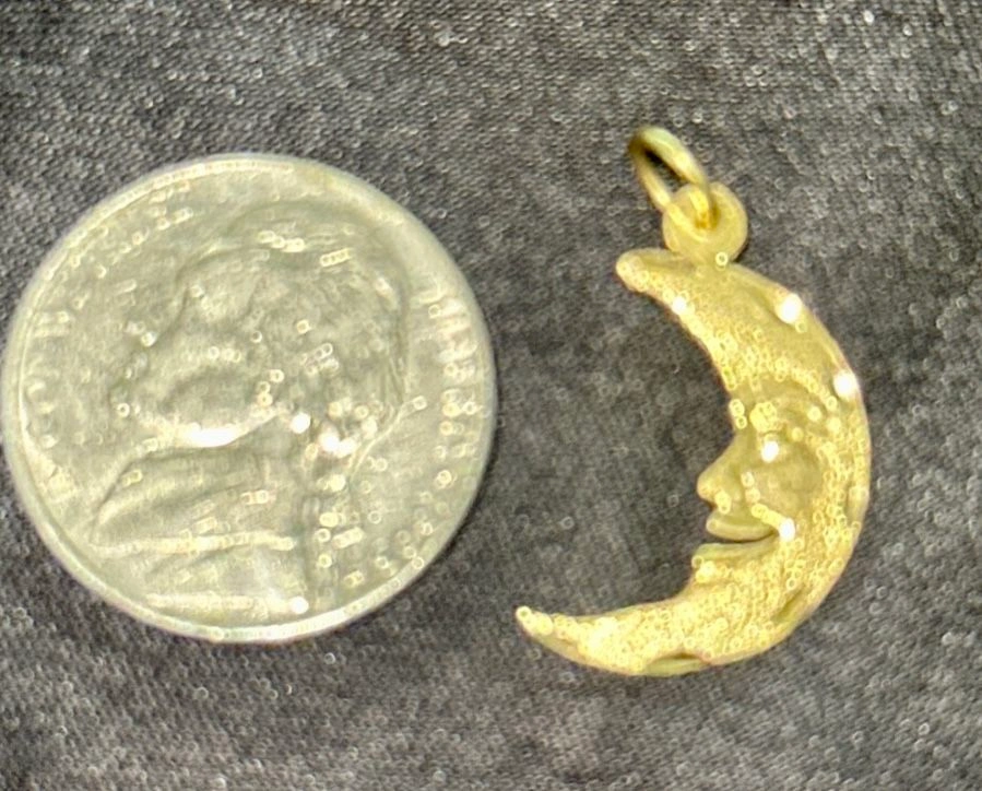14K Yellow Gold 1/2 Moon Pendant with Diamond Cut detailing for sparkle! Stamped on back 14K. Approximate measurements: 1” Tall, 1/2” Wide. 0.86 Grams of 14K Gold. All of my items are Real Gold and Genuine Gem Stones and or Diamond if stipulated in the listing. Cash only sale, Buyer must pick up from the Morton Grove Area. All transactions will be conducted at a local police department. Feel free to message if you have any questions!