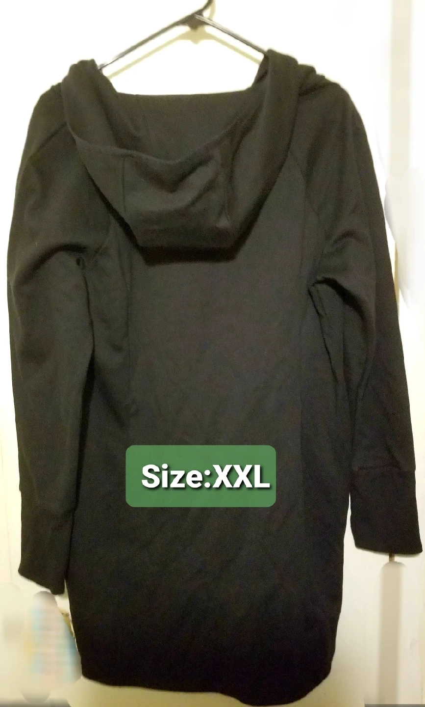 Selling a ZeroXposur black hoodie dress in size small & XXL ! The body is made of 73% polyester and 27% cotton. The ribbing is 63% polyester, 33% cotton, and 4% spandex. It features a zipper, a hood, pockets, perfect for layering!