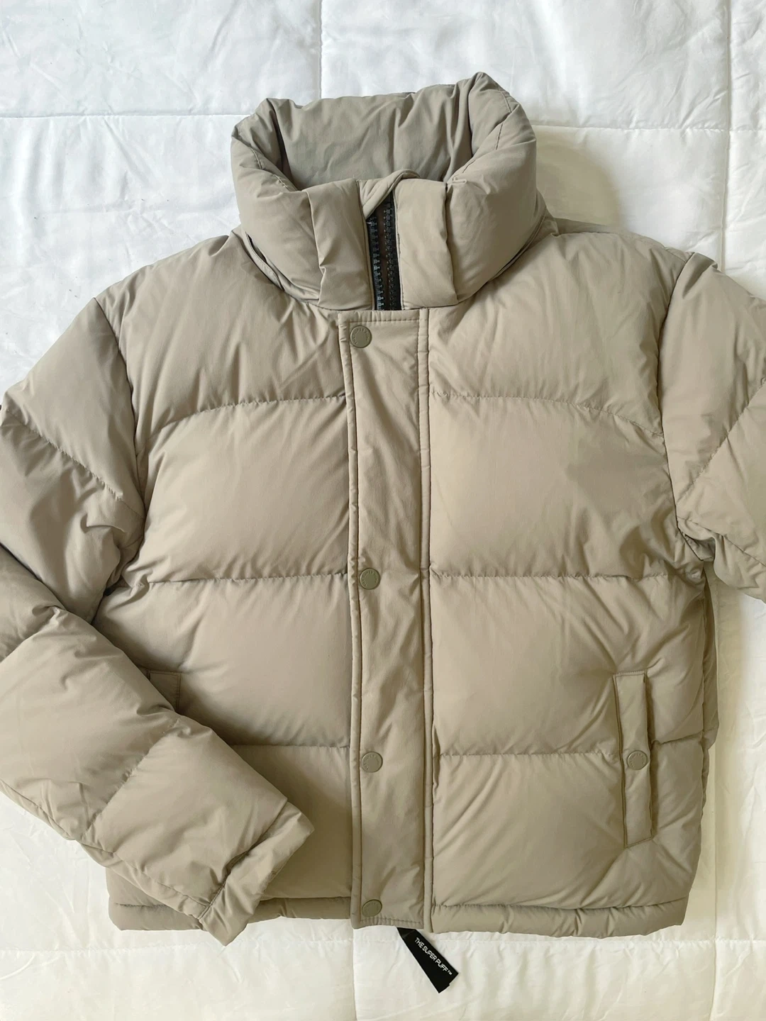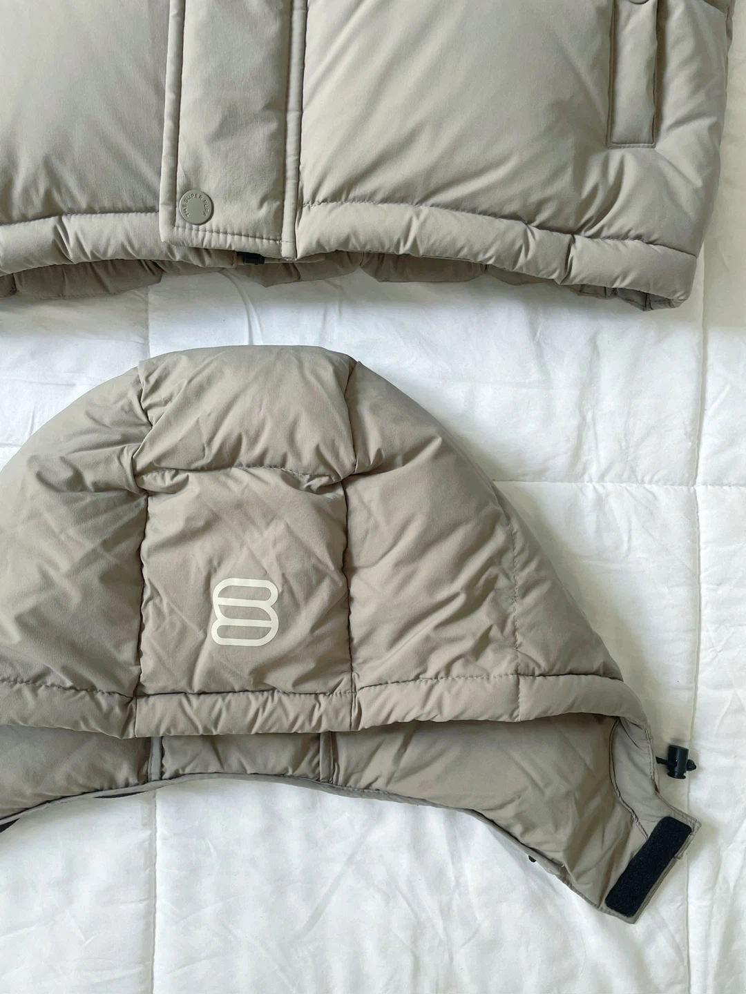 15Chic and cozy puffer jacket. Ideal for chilly days. Features a high collar and detachable hood. From Aritzia: Engineered to deliver warmth to -20°C / -4°F, Shorty will keep you super warm where it counts. It's filled with 100% responsibly sourced, 800+ fill-power premium down that provides ultra-warm, lightweight insulation. It’s constructed with cliMATTE™ — water-repellent and wind-resistant ripstop fabric with a matte finish and a soft feel. It’s sourced from a Japanese mill that specializes in performance fabrics. beige puffer, high collar, detachable hood, windproof, water-resistant, lightweight insulation, down fill, cozy outerwear, winter jacket, Japanese fabric