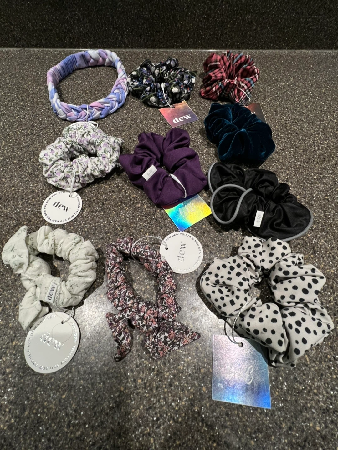 7 NWT DEW Scrunchies and 1 NWT Headband. 2 NWOT DEW Scrunchies. Great scrunchies and all are OGs!