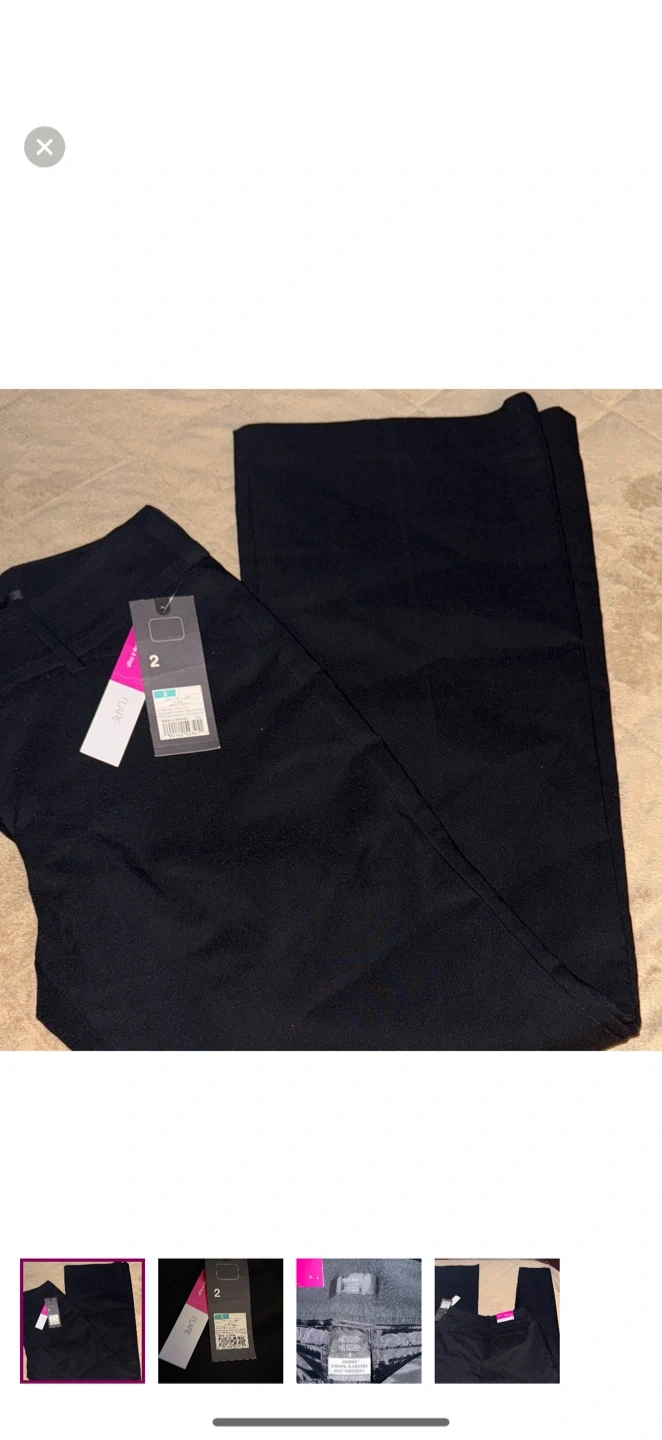 Selling a pair of Mossimo brand flare pants in black. They are a size 2 and made of 50% cotton, 38% rayon, and 12% spandex. Brand new. Color black