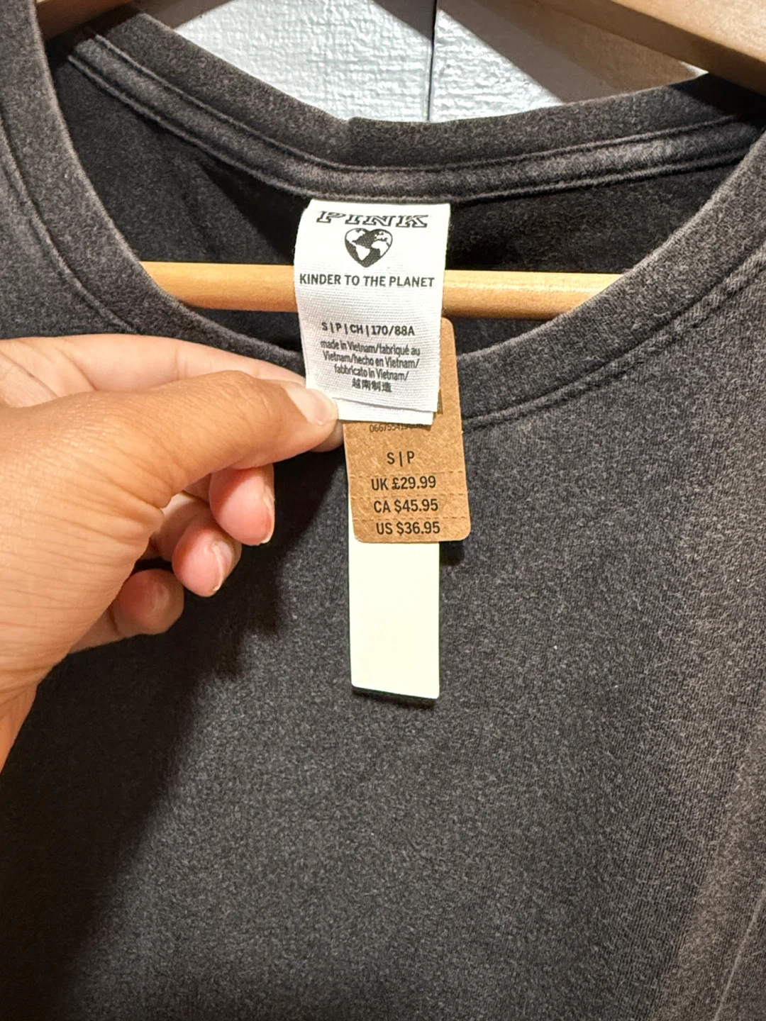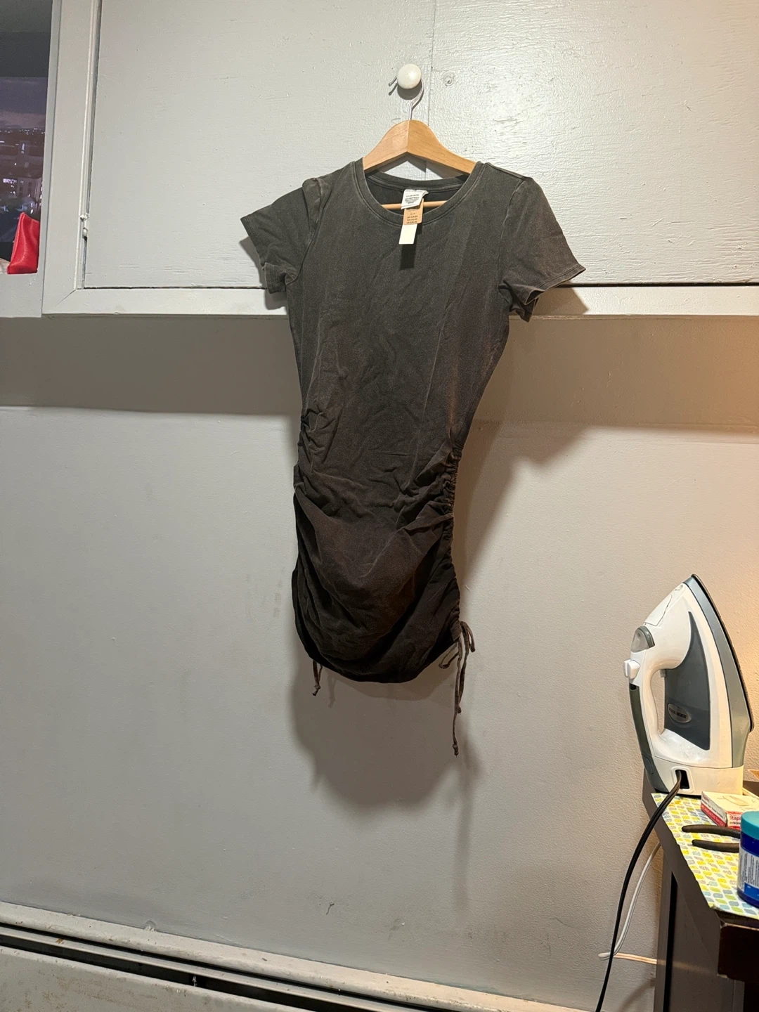 This is a PINK dress in size S. It's made of 95% cotton and 5% elastane. The tag shows the original price was US $36.95