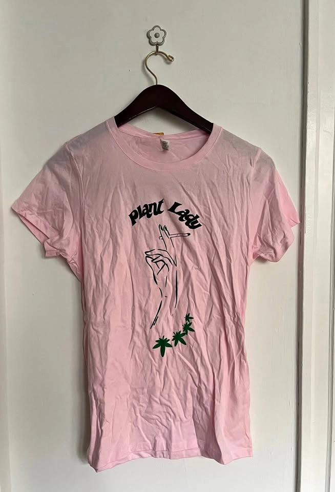 65NEW with tags Taboo Tabou (from the Alley Chicago) pink "Plant Lady" graphic t-shirt, size large. Store does not exist anymore.