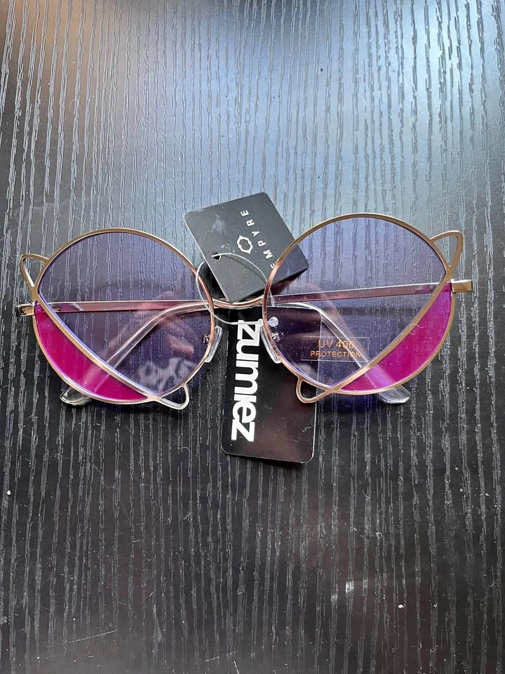 65NEW with tags pink and purple Zumiez Empyre duo pink and purple round sunglasses with UV 400 protection.