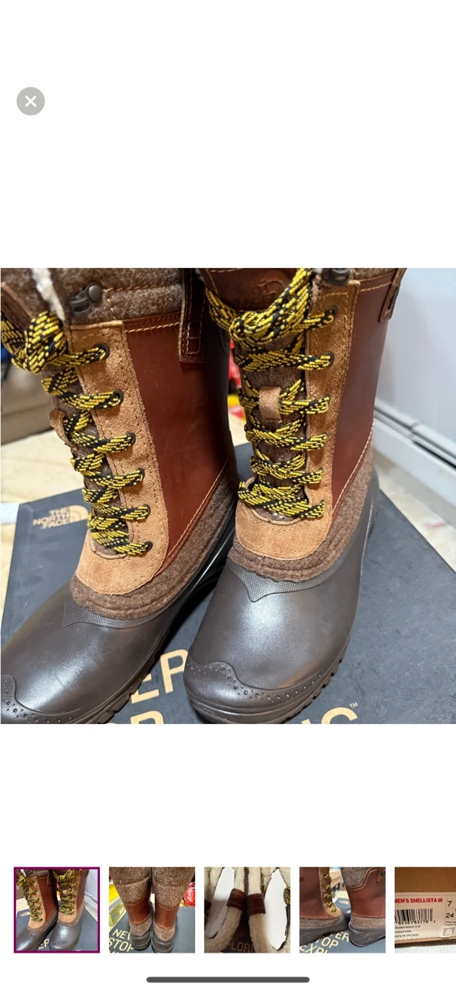 Selling a pair of The North Face Shellista III women's boots in size 7. These boots are in demitasse brown/carafe brown color. They are perfect for keeping your feet warm and dry during the colder months! Brand new