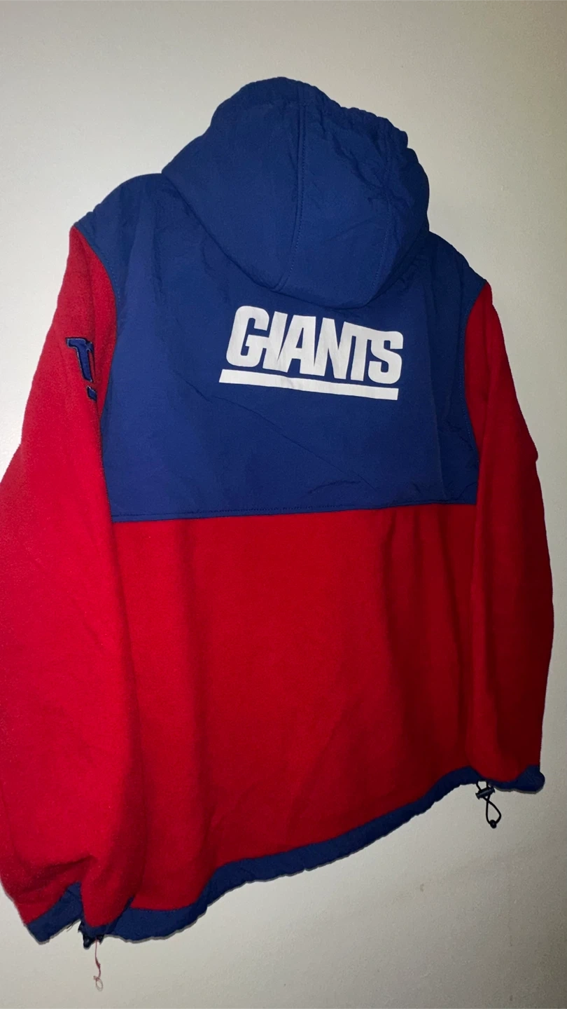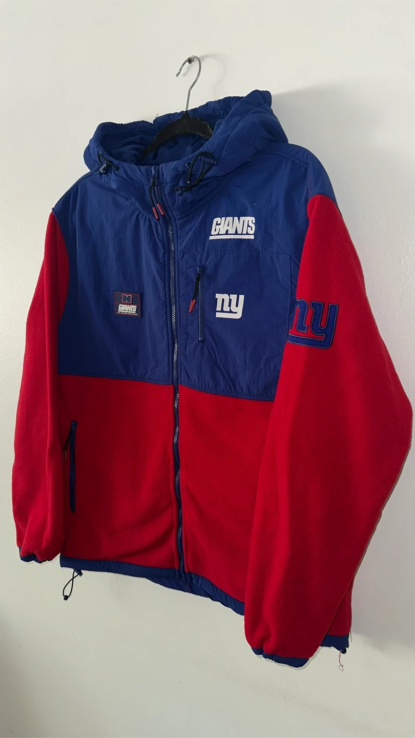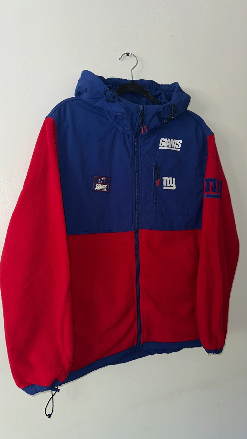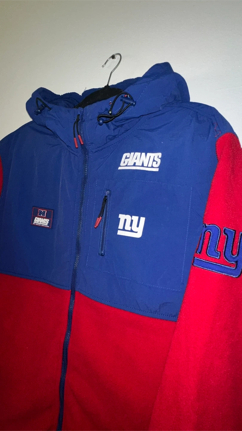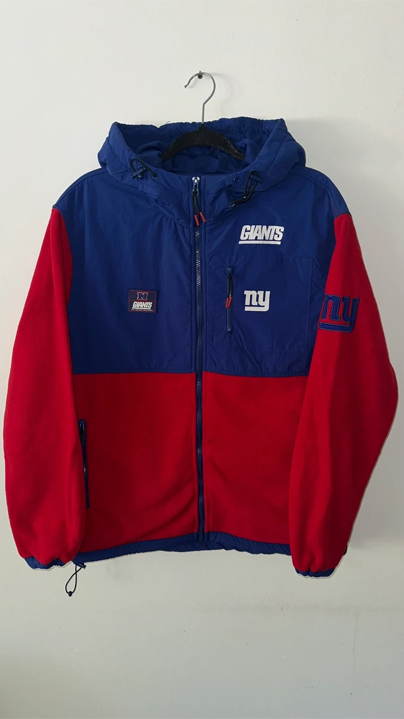 Cozy NY Giants fleece jacket in the team's signature blue and red colors! Features the Giants logo on the front and back. Perfect for showing your team spirit on chilly days