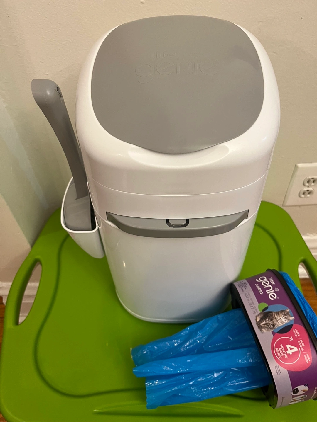 I'm selling a Litter Genie Jumbo cat litter disposal system. It's in great condition and ready to help keep your home clean and fresh! It includes the scoop and a used refill.