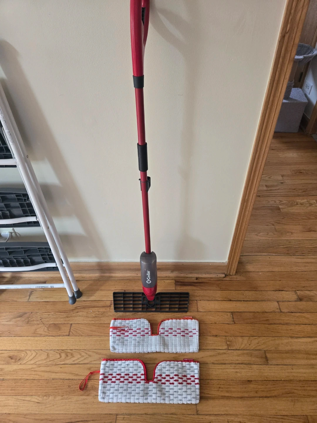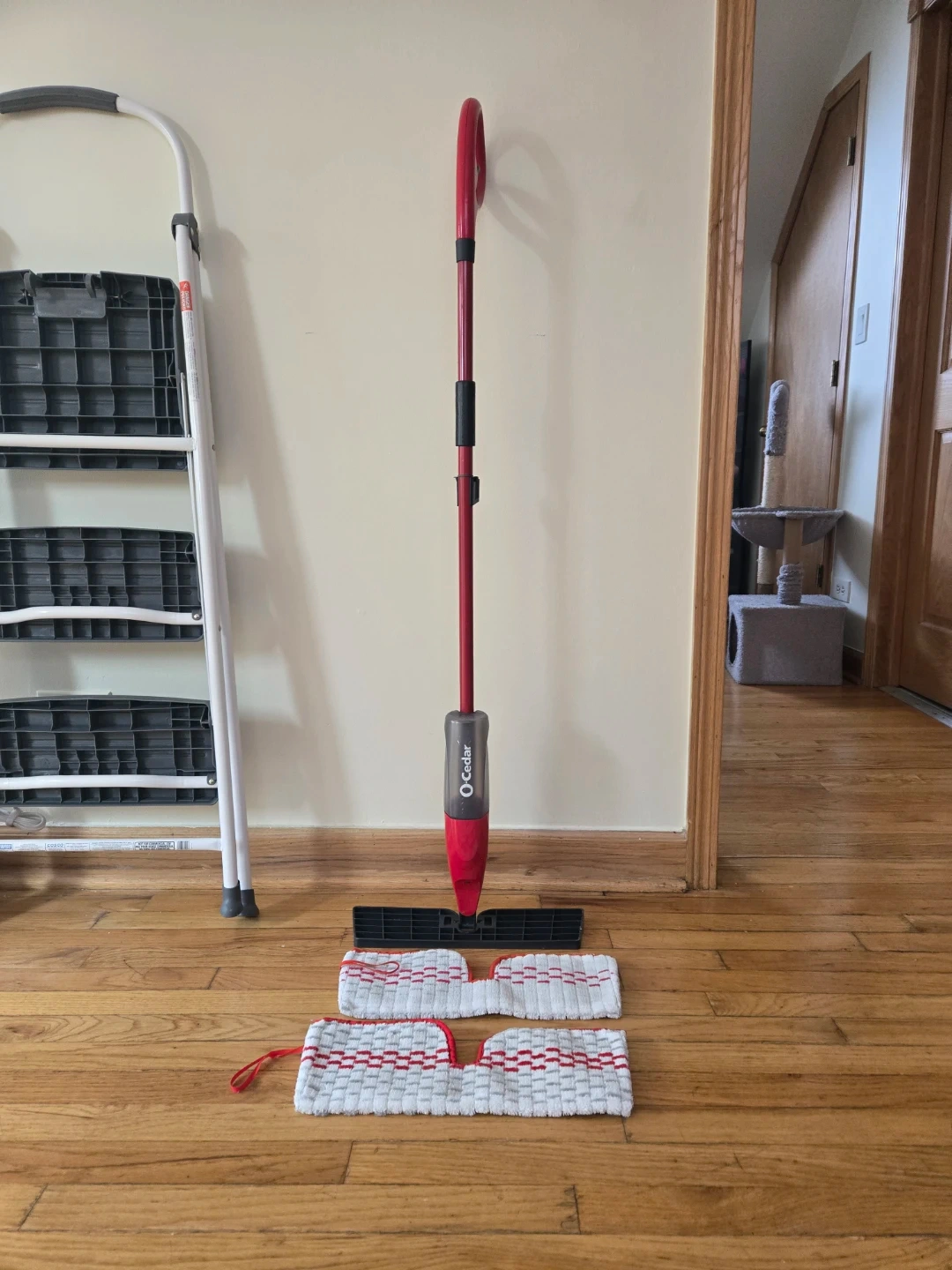 70I'm selling an O-Cedar EasyWring Microfiber Spray Mop! It's in great condition and ready to help you keep your floors sparkling clean. This mop features a convenient spray mechanism and comes with two microfiber mop heads for effective cleaning on various surfaces. It's lightweight and easy to maneuver, making your cleaning routine a breeze!