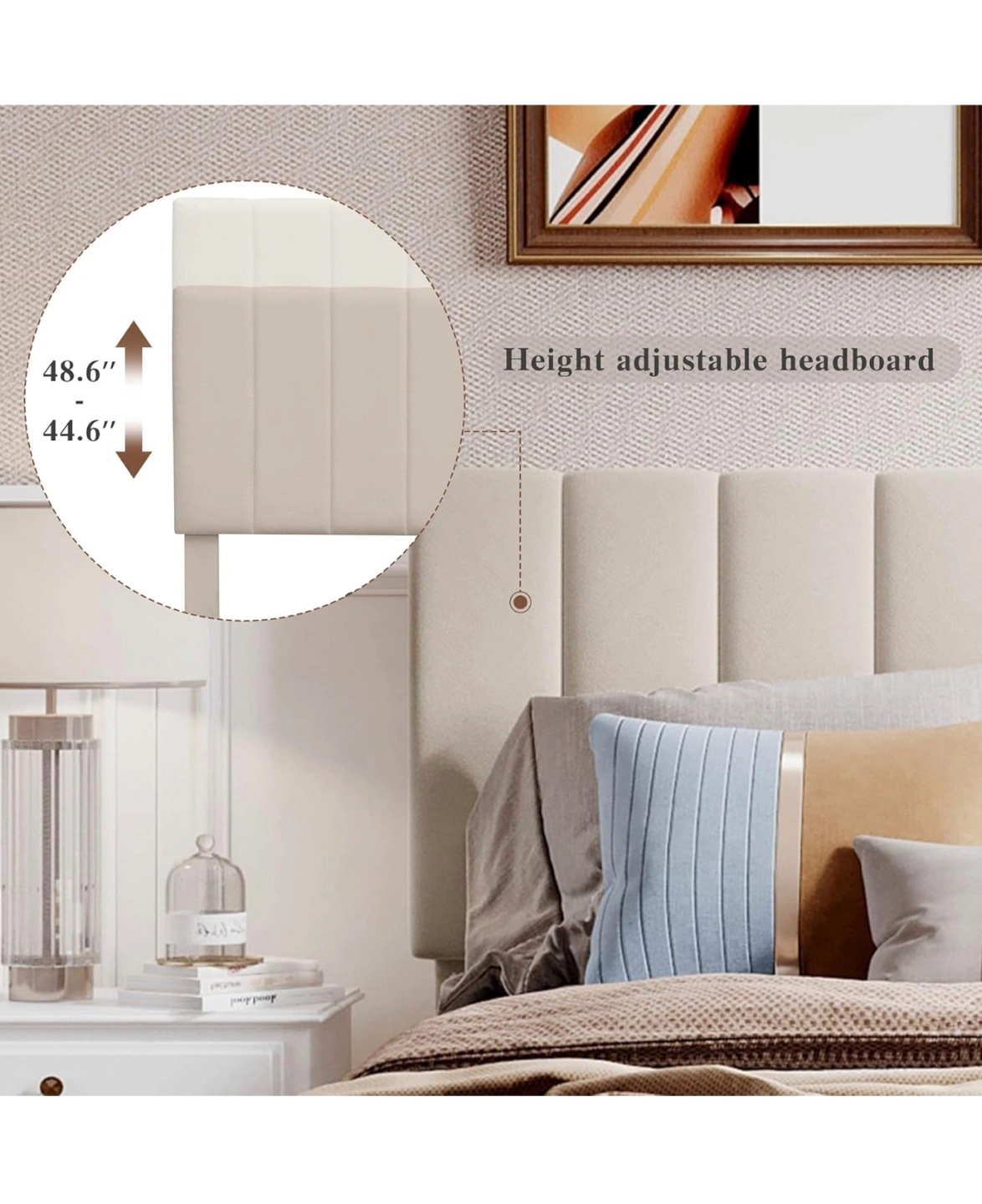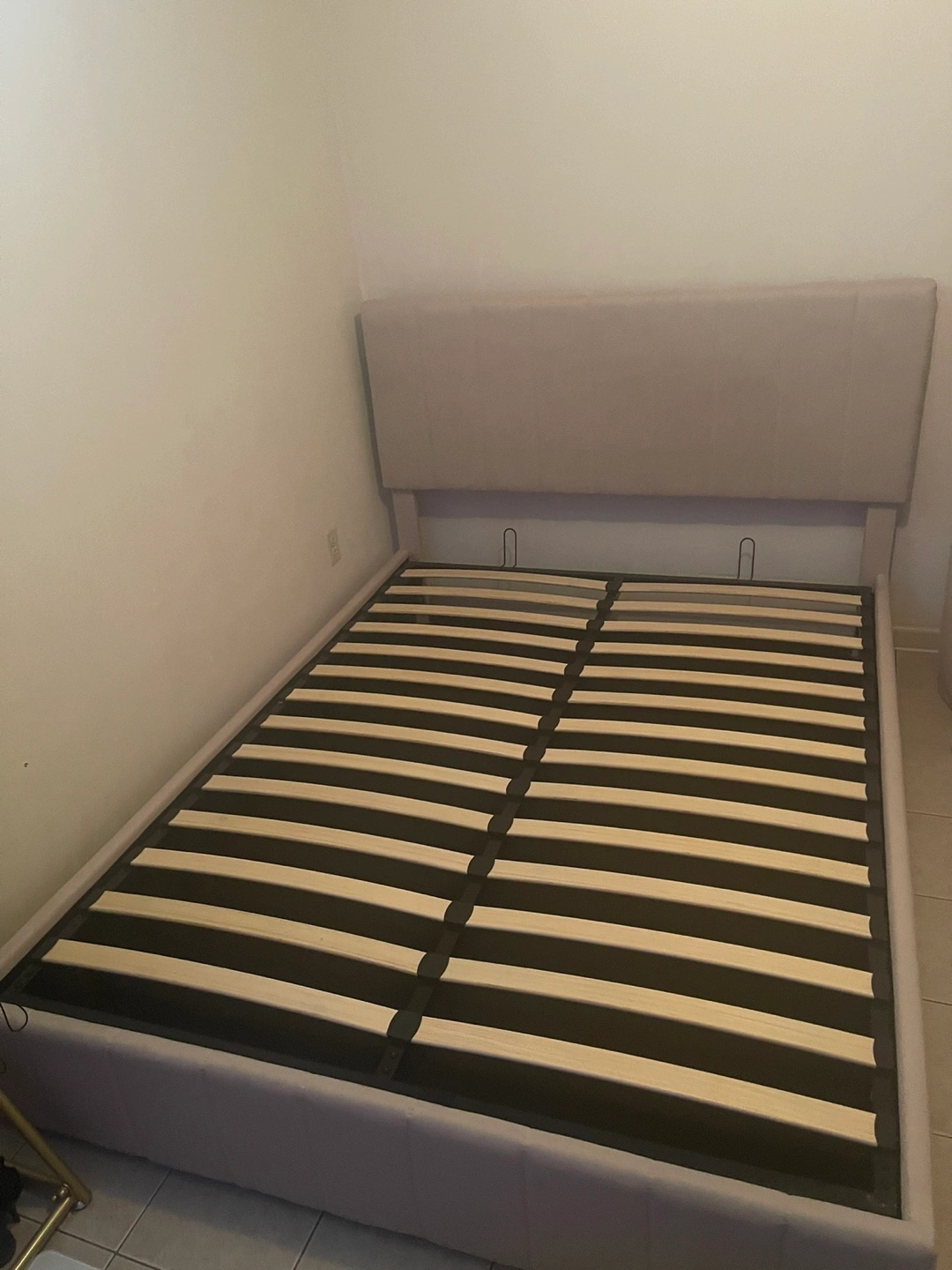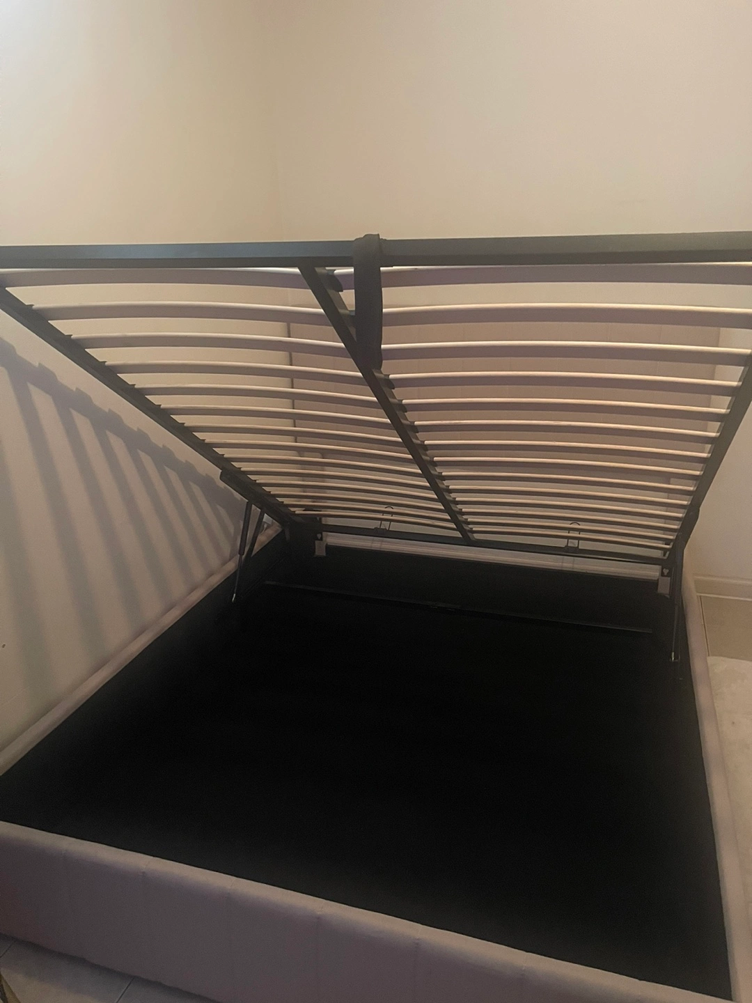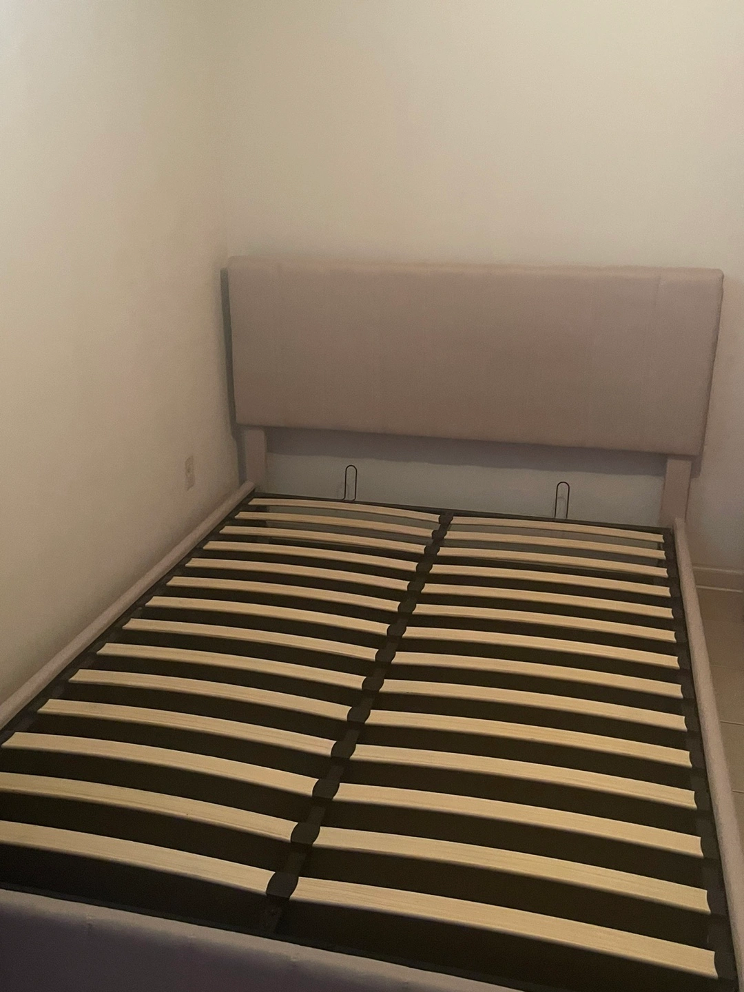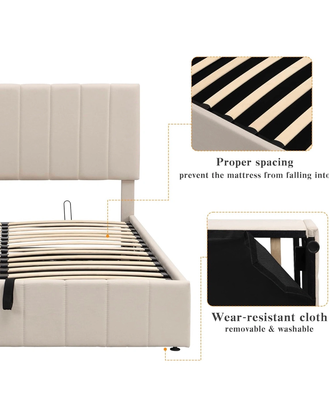 Beige Gas Lift Up Storage Platform Queen Bed Frame