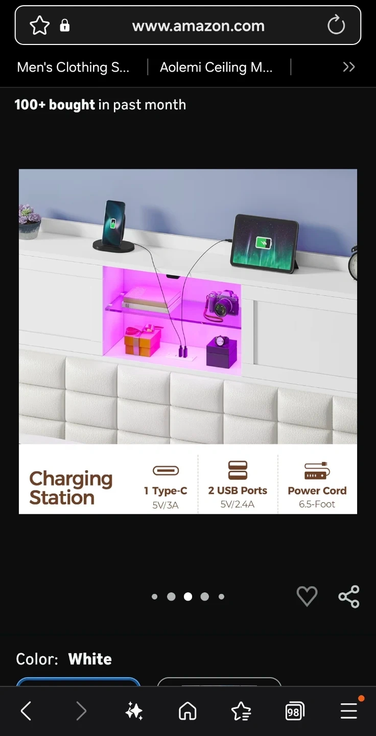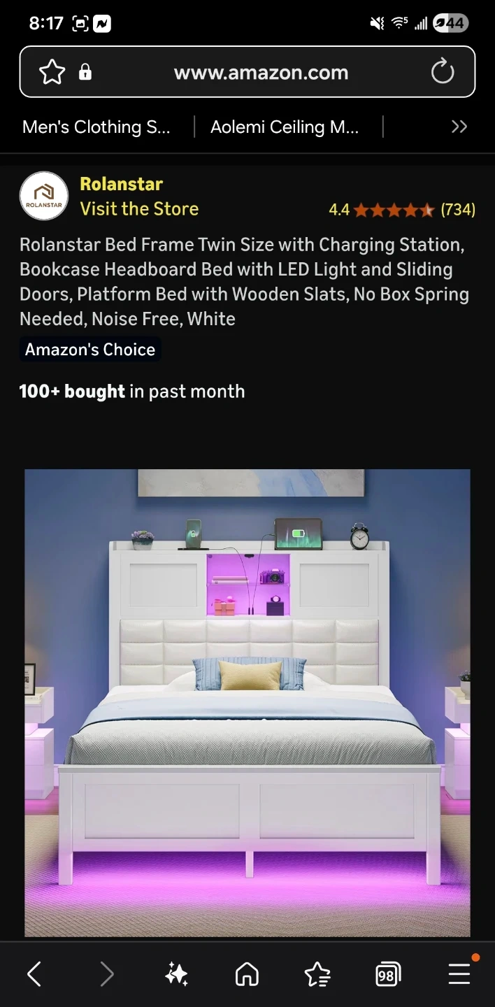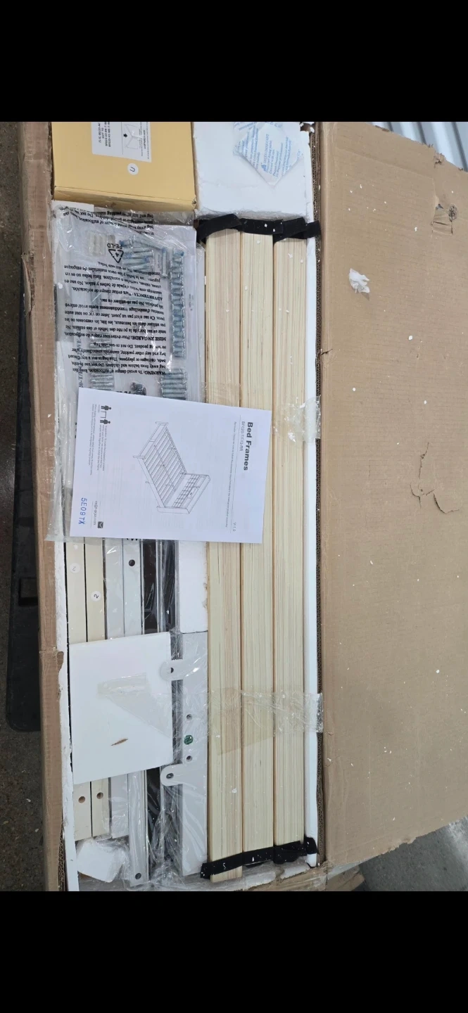Selling a Rolanstar twin size bed frame in white! It features a charging station, bookcase headboard with LED light and sliding doors. Platform bed with wooden slats, so no box spring is needed! Dimensions are 84.4" x 39.9" x 45.9".