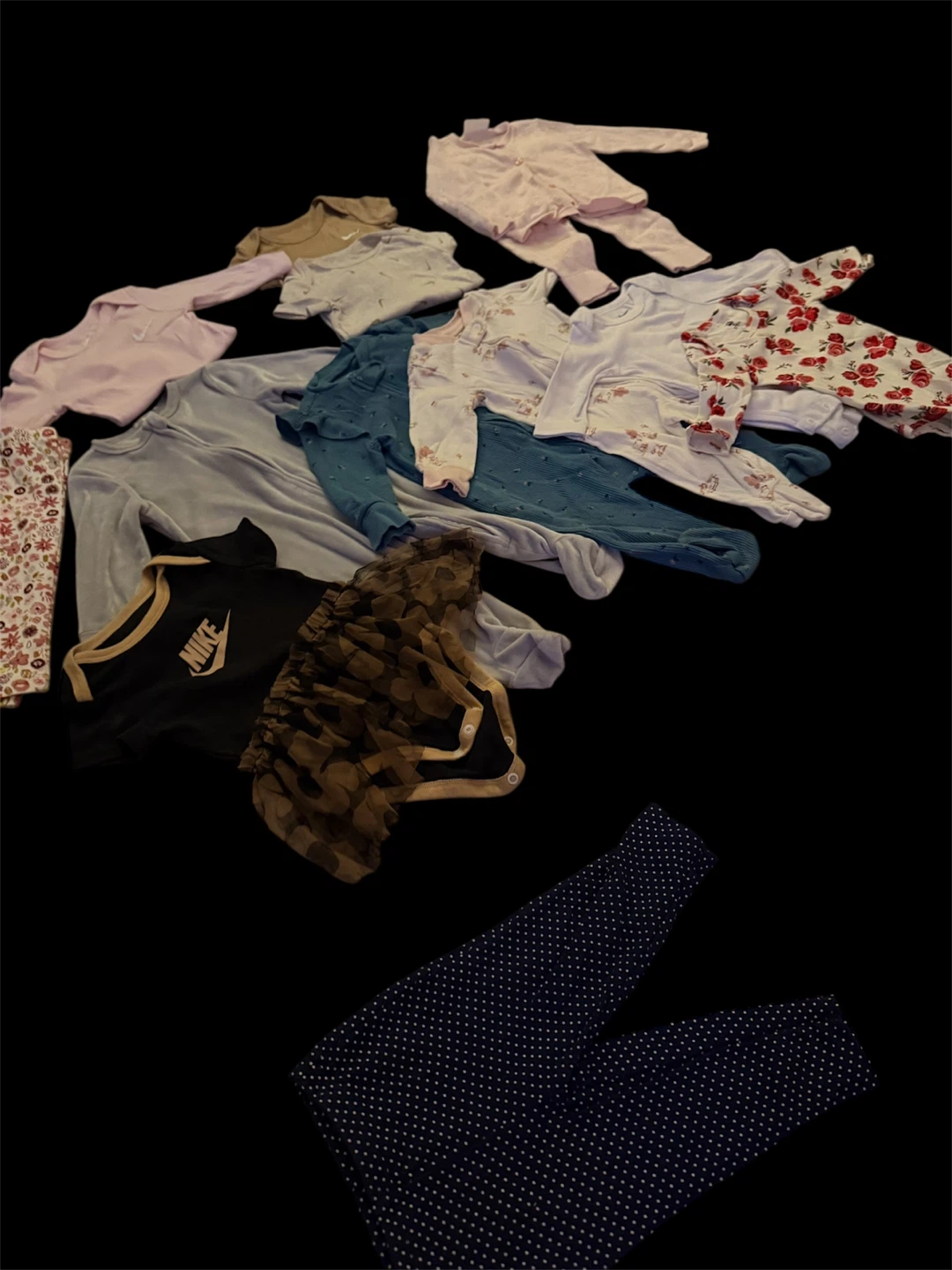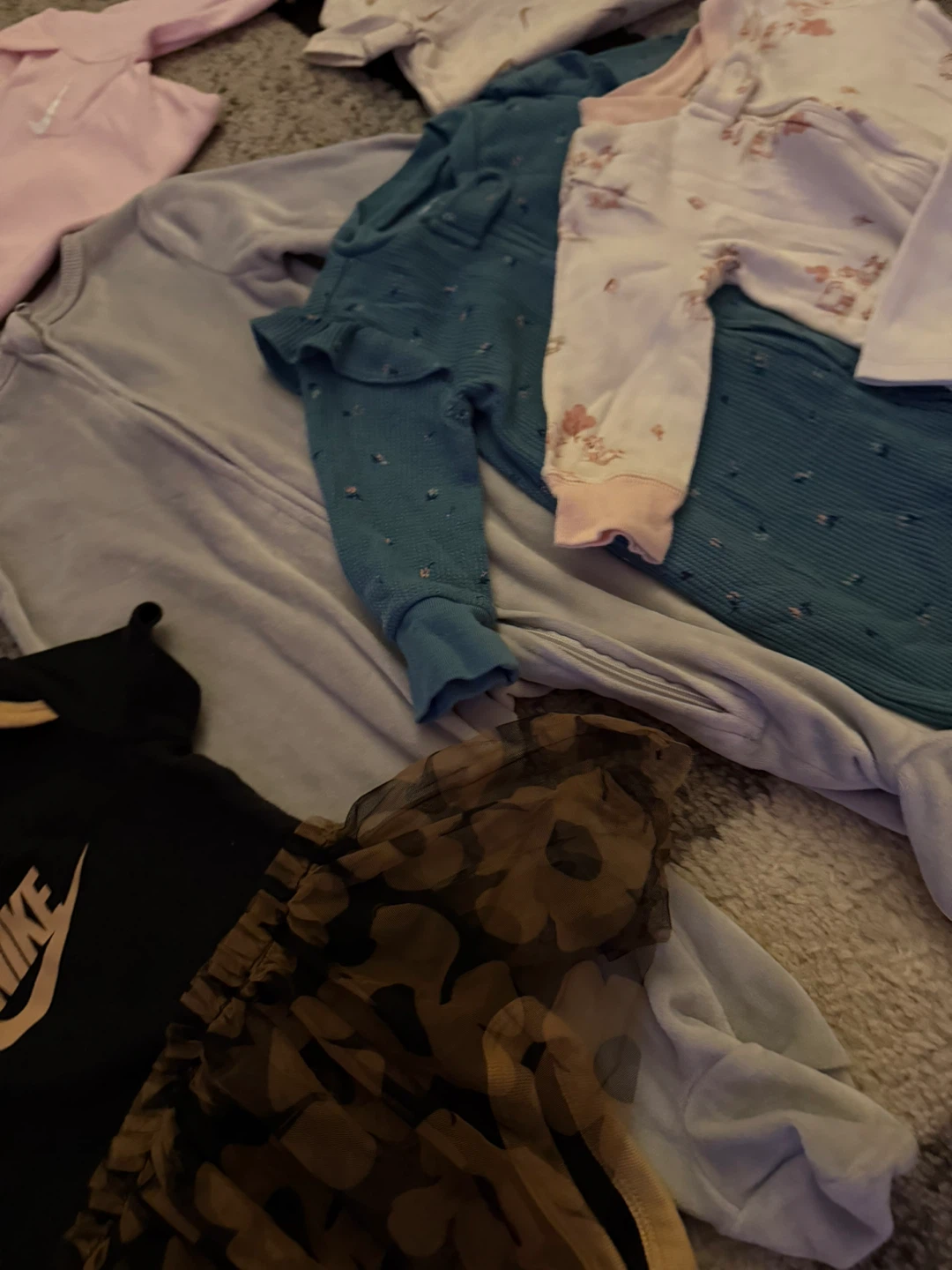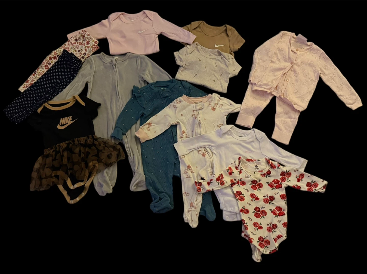 Selling a bundle of baby clothes, including onesies, sleepers, and outfits. Brands include Nike, Old Navy and Carter's. Most items are size 6M. Some 6-9. Great for a little one!