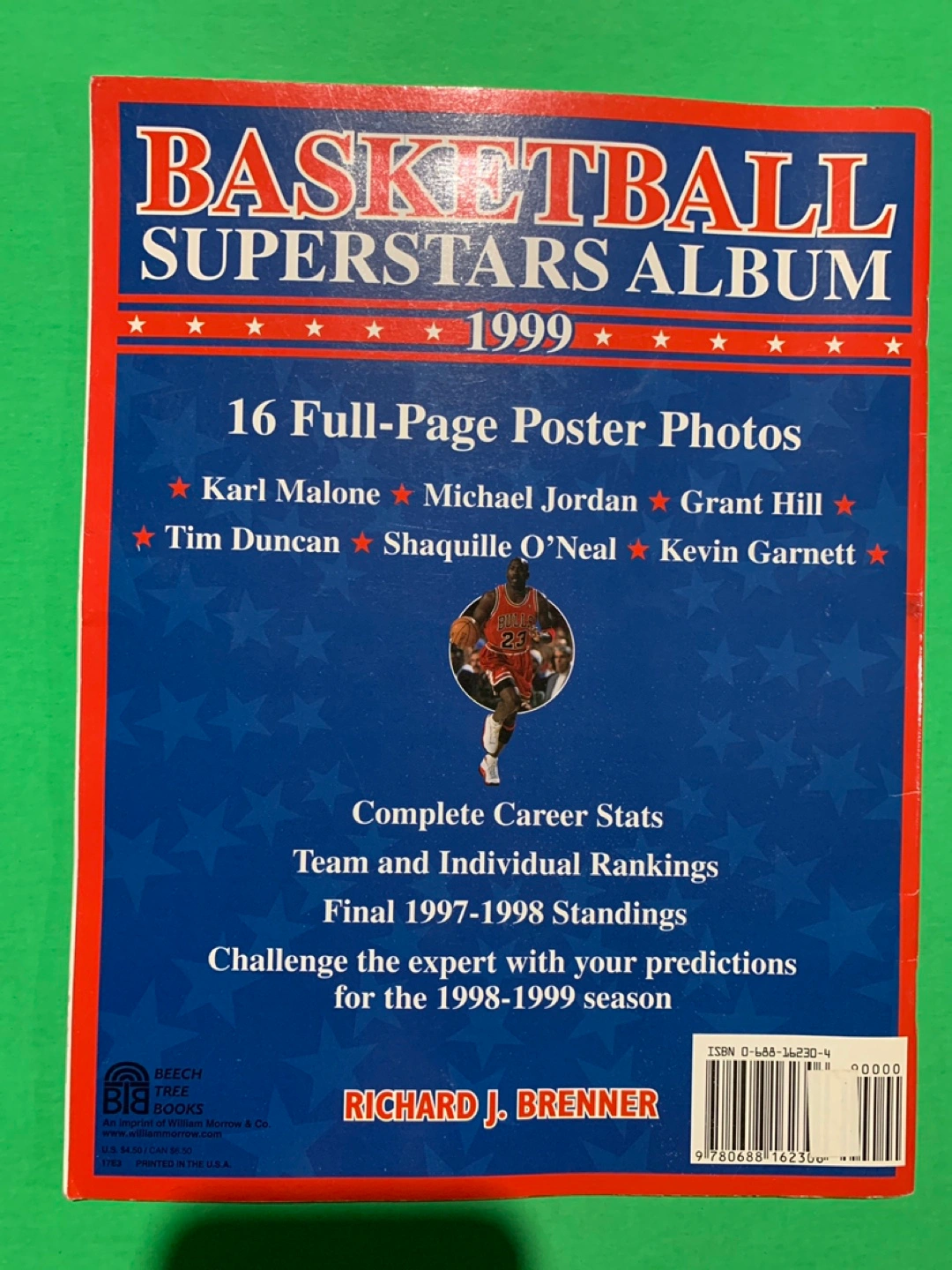 1999 Basketball Superstars Album. Features 16 full-page superstar posters. Includes team and individual stats. Complete career stats and rankings. 1997-1998 season standings. Challenge your expert predictions for the 1998-1999 season.